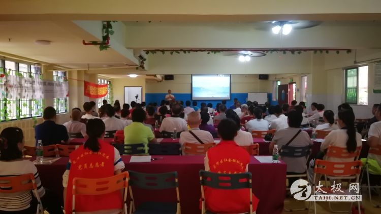 2019年9月15日,由龙华区民政局主办,福城街道湘燕太极拳协会承办的"迎时代春风展七彩太极"公益创投项目系列活动之一"文化福城,太极传承太极知识讲座"在厚德世家.福苑暖心社区举行并圆满落幕,福城街道及周边社区太极拳爱好者130多人参加了此次讲座。 此次讲座特邀中国武术七段、国家一级裁判、杨式太极拳第五代传人、大宋体育产业股份有限公司董事局主席宋斌老师主讲。同时还邀请到了深圳市太极拳研究会常务理事,宝安区太极拳研究会会长谢勤老师,杨式太极拳第六代传人宋丹丹老师、李兆刚老师、胡婉妍老师、高柔婧老师。宋老师与大家一起分享了三十多年的练拳、传拳、教拳经验,与大家共同探讨太极拳的奥秘,一起分享太极带来的健康乐趣。活动分2个环节,第一个环节宋老师给大家进行了理论讲解,第二个环节宋老师带领大家进行了实践练习,理论与实践相结合的讲学,所有学员受益匪浅。 据悉,"迎时代春风 展七彩太极"得到深圳市龙华区民政局专项资金扶持,是2019社会组织党建+公益创投项目,旨在使广大太极拳爱好者更深一步地了解太极拳的内涵,太极与养生、太极与技击的更多知识,丰富广大居民的文化生活,提高大家的身体素质。福城街道湘燕太极拳协会将一如既往的秉承公益之心,弘扬和传承传统文化,普及和推广太极,惠及大众。 现场签到 协会骨干刘雯主持 宋斌老师理论讲学 学员专注认真 党员和入党积极分子负责后勤服务工作 宋老师讲解太极招式用法 室外实践咯 课后填写意见反馈表 |