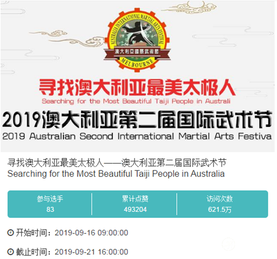 缘自太极,网聚中澳。太极拳,中华优秀传统文化的杰出代表,是中国文化国际表达的极佳载体,是中国对外交流的闪亮名片。2019年8月30日至9月1日,澳大利亚第二届国际武术节在维多利亚州博士山(Box Hill)成功举办,来自世界各地1500余名武术爱好者共襄盛会,创造了澳大利亚武术史上的辉煌纪录,让中华武术尤其是太极拳在澳洲大地上星光闪耀。 为充分弘扬中华武术,传播太极正能量,向世界展示中澳太极人的风采,2019澳大利亚第二届国际武术节主题活动之“寻找澳大利亚最美太极人”网络展播活动于9月16日火热开启,活动由澳大利亚维省华人社团联合会、澳大利亚武术文化艺术总会(AWCC)主办,澳大利亚东武太极联盟/Australian Orlental Martial Arts TaiChi INC、澳大利亚大华时代传媒集/Chi Generation / Australian TaiChi、太极网(TAIJI.NET.CN)、东武太极研修院承办,受到国际功夫联合会、WQTA支持承办。 9月16日,经过组委会精心挑选和推荐的83部个人和集体视频作品正式上线展播,至9月21日历经六天展播,受到全球广大拳友的强烈关注和热议,展播平台网络访问量高达600余万,累计点赞近50万,各国拳友互动留言频繁刷屏,纷纷为中澳太极人点赞。 太极为媒,以网会友连接五湖四海的拳友,向世界传递中华太极风。据悉,澳大利亚国际武术节由海外优秀太极推广人蒋慧(wendy)女士创办,蒋慧系澳大利亚籍华人,多年来积极在澳传播推广太极拳,影响卓著。值得一提的是,2018年由她率领的澳大利亚代表队参赛太极网主办的“怀山堂杯”第四届国际太极拳网络视频大赛,经过精心策划和准备,她组织澳洲当地数百名太极人共同参与集体项目录制,从澳洲到中国劲刮太极风,轰动一时,恢弘大气的“史诗级”展演使其在众多集体项目中一举夺魁,引发国内外太极界高度关注和一致好评。 武术盛会创辉煌,最美太极扬万里,2019澳大利亚第二届国际武术节之“寻找澳大利亚最美太极人”网络展播活动的成功举行,有效地促进了中澳两国太极文化的传播与交流,积极展示太极时代篇章、推动太极文化的国际化格局。 责任编辑:太极网小闫 |