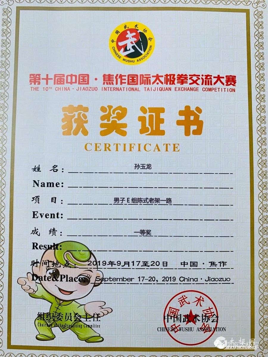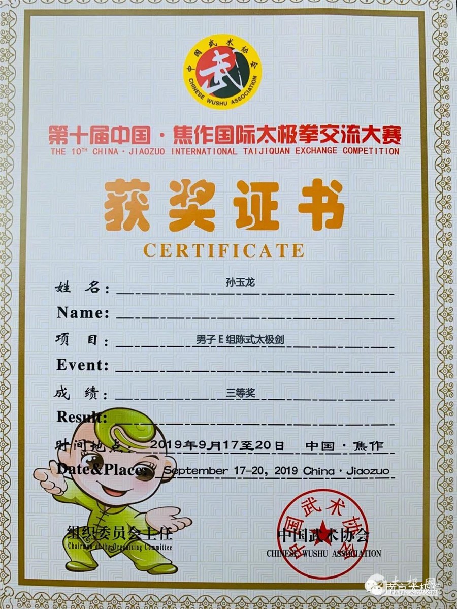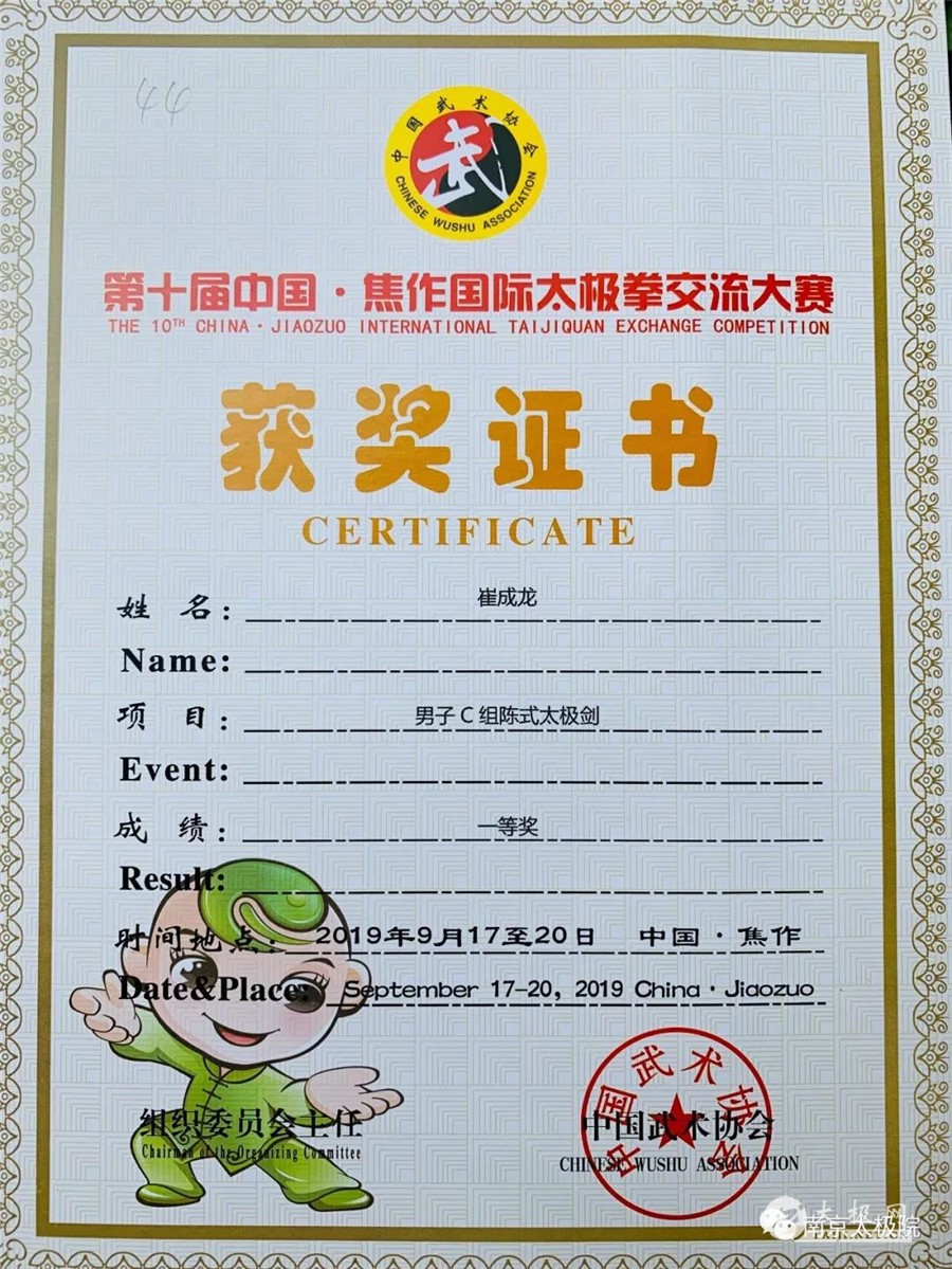 9月16日,历时5天的第十届中国焦作国际太极拳交流大赛暨2019云台山旅游节成功举办,此次太极拳交流会是焦作历史上规模最大、活动最多、范围最广的一次盛会,共邀请到了59个国家和地区的437支代表队4365名运动员,1200多名中外企业代表以及文化旅游界专家学者等各领域代表万余人,交流会覆盖了体育竞赛、文化旅游、商务经贸、高峰论坛、宣传推介等40多项内容丰富、形式多样的活动。 经过激烈角逐,南京成龙太极拳馆三位参赛代表从4000多名参赛者中脱颖而出,一举获得5枚金牌、1枚铜牌!总教练崔成龙荣获男子陈式太极拳老架一路第一名、陈式太极剑第一名、男子精英赛第一名、获得大赛精英奖金一万元;学员张阅斌荣获男子D组陈式老架一路一等奖、武德风尚奖运动员;学员孙玉龙荣获男子E组陈式老架一路一等奖、男子E组陈式太极剑三等奖。 太极名家陈小旺老师为第一名选手崔成龙颁奖 南京成龙太极拳馆总教练崔成龙荣获“男子C组陈式老架一路 第一名”“男子C组陈式太极剑 第一名”“第十届中国焦作国际太极拳交流大赛太极拳精英奖10000元” 学员张阅斌与太极名家张东武老师合影留念 南京成龙太极拳馆学员张阅斌荣获“男子D组陈式老架一路 一等奖”“武德风尚奖运动员” 学员孙玉龙与太极名家张东武老师合影留念 南京成龙太极拳馆学员孙玉龙荣获“男子E组陈式老架一路 一等奖”“男子E组陈式太极剑 三等奖” 获 奖 证 书 赛 场 风 采 南京成龙太极拳馆参赛选手合影留念 责编:太极网豪杰 |