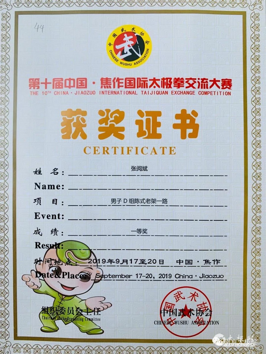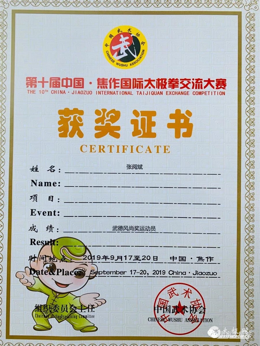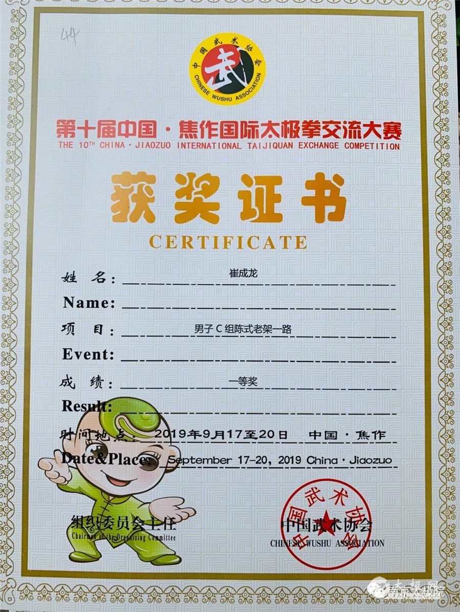 9月16日,历时5天的第十届中国焦作国际太极拳交流大赛暨2019云台山旅游节成功举办,此次太极拳交流会是焦作历史上规模最大、活动最多、范围最广的一次盛会,共邀请到了59个国家和地区的437支代表队4365名运动员,1200多名中外企业代表以及文化旅游界专家学者等各领域代表万余人,交流会覆盖了体育竞赛、文化旅游、商务经贸、高峰论坛、宣传推介等40多项内容丰富、形式多样的活动。 经过激烈角逐,南京成龙太极拳馆三位参赛代表从4000多名参赛者中脱颖而出,一举获得5枚金牌、1枚铜牌!总教练崔成龙荣获男子陈式太极拳老架一路第一名、陈式太极剑第一名、男子精英赛第一名、获得大赛精英奖金一万元;学员张阅斌荣获男子D组陈式老架一路一等奖、武德风尚奖运动员;学员孙玉龙荣获男子E组陈式老架一路一等奖、男子E组陈式太极剑三等奖。 太极名家陈小旺老师为第一名选手崔成龙颁奖 南京成龙太极拳馆总教练崔成龙荣获“男子C组陈式老架一路 第一名”“男子C组陈式太极剑 第一名”“第十届中国焦作国际太极拳交流大赛太极拳精英奖10000元” 学员张阅斌与太极名家张东武老师合影留念 南京成龙太极拳馆学员张阅斌荣获“男子D组陈式老架一路 一等奖”“武德风尚奖运动员” 学员孙玉龙与太极名家张东武老师合影留念 南京成龙太极拳馆学员孙玉龙荣获“男子E组陈式老架一路 一等奖”“男子E组陈式太极剑 三等奖” 获 奖 证 书 赛 场 风 采 南京成龙太极拳馆参赛选手合影留念 责编:太极网豪杰 |
