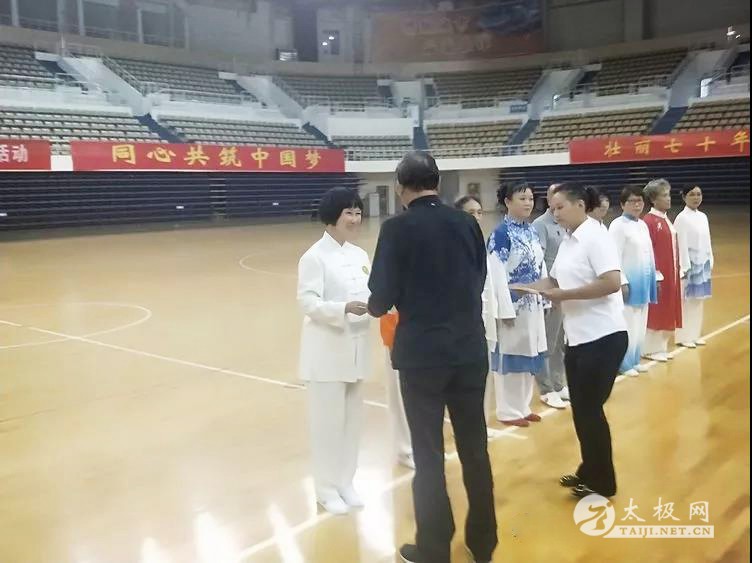 9月27日,2019焦作市老年人太极拳(剑)交流展演活动在焦作市太极体育中心举行。本次交流赛由焦作市体育局、焦作市老年人体育协会、焦作市武术协会共同举办。来自全国的35个代表队、数百余名太极拳爱好者参赛。 焦作陈小星拳术研究会参赛队员在会长杨建平的带领下,刻苦训练、奋力拼搏,获得了太极拳第一名、太极剑第二名的好成绩,为祖国70华诞献礼。据悉,此次选派参赛队员由焦作陈小星拳术研究会2019届新队员组成,平均年龄近六十岁,年长的近七十岁,他们在比赛中大放异彩,成为赛场亮点,不少参赛选手都被这些太极新人的认真感染,对他们称赞不已。 中国老体协太极拳专委会培训部主任王国政为获奖选手颁奖并合影留念。 焦作陈小星拳术研究会队长孙玉华和队友们向大家报喜。 焦作市武术协会领导张治远和焦作陈小星拳术研究会代表队合影留念 比赛结束了,队友们将以此为契机,继续发扬团队的优良作风,进一步学好练好太极拳(剑),更上一层楼。 责任编辑:太极网小田 |