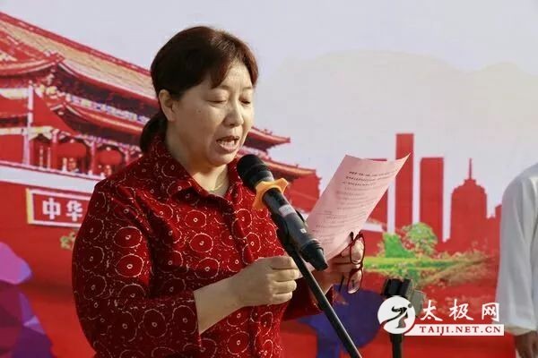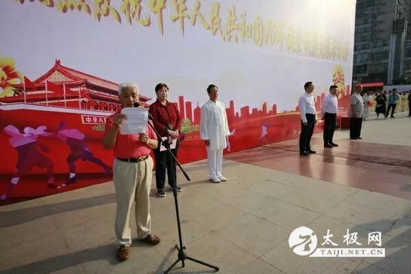 时至8时参会的领导,后勤,安保,医疗保障人员准时到达。由本次活总指陈仕国同志按服装颜色,活次序,内容等进行调度。参会的领导有:巴中市教育和体育局张夕谦局长,沈鹏副局长,鲁瑛副局长,巴中市太极拳协会刘云太会长,巴中市巴州区太极拳协会姜正礼会长,恩阳区老年运动会副会长樊春安副会长和市,区协会的秘书长,副会长等。大会由鲁瑛同志主持,刘云太同志致贺词,沈鹏同志对这次庆祝中华人民共和国成立70周年太极展演活动作了热情洋溢的讲话并宣活动开始!全场响起了没有共产党就没新中国的厷亮歌声,红祺招展加上前来观赏的群众近万人手着小红祺随歌挥实是壮观。