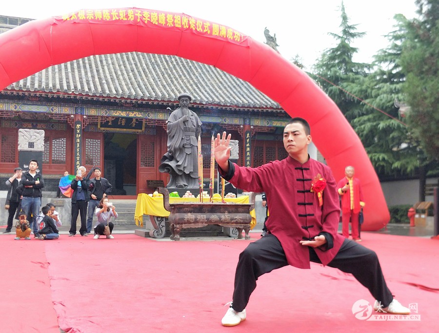 (太极网报道)太极根源陈家沟,薪火传承遍四方。2019年10月4日,太极拳发源地温县陈家沟热闹非凡,一场太极拳薪火传承盛事正在举行。在众多嘉宾及拳友的见证下,来自河南沁阳的晓峰太极文武学校校长兼总教练李晓峰收徒仪式在陈家沟太极拳祖祠举行,26名青少年太极拳爱好者通过传统拜师仪式拜入李晓峰门下,正式成为陈式太极拳传承人,为太极拳薪火传承增添新生力量。 现场嘉宾 温县文化馆馆长、温县非物质文化遗产保护中心主任闫忙种主持收徒仪式。温县有刚太极武校校长陈有刚、陈家沟功夫馆馆长张福旺、陈家沟太极拳名家陈大冠以及来自沁阳的市体育局局长周向东、沁阳市合庆房地产公司董事长牛冬文、沁阳市旅游局副局长张天峰、沁阳市哥德咖啡董事长赵香君等应邀出席并见证仪式。 李晓峰上香祭祖 收徒仪式遵循传统礼仪,简洁庄重。李晓峰师父陈长虹祭拜先祖并宣读祭祖文,随后李晓峰祭拜太极拳始祖陈王廷及历代先师,上香、敬酒、行跪拜礼,虔诚肃穆。 新弟子们依次向师父、师母行叩拜礼并敬茶,在现场嘉宾及众人见证下,拜师仪式圆满礼成。李晓峰携新弟子们再次向太极拳始祖陈王廷及历代先师跪拜并礼敬上香,弟子代表带领新入门弟子宣誓。 陈长虹在致辞中对弟子李晓峰在太极拳传承、传播上的成绩予以肯定和赞赏,并提出希望,希望李晓峰在今后要更加严格要求自己,以身作则传拳授道,带领众弟子学员更好地传承、传播太极拳,为传统文化传播和全民健身、健康中国事业贡献力量。 新弟子代表发言表示,一定谨记师父教诲,不负使命,担当起传播弘扬太极拳的重任。李晓峰向弟子们训话告诫道:要遵守门规戒律、团结同门、刻苦练拳,承担起弘扬传播太极之责,希望弟子们认真学习太极拳技艺,为传播和弘扬太极拳文化作出自己应有的贡献。 随后李晓峰率众弟子于太极拳祖祠献上了精彩纷呈的太极拳械表演,吸引了广大游客的瞩目观看,训练有素的集体表演、学员们精湛的技艺,大家纷纷鼓掌点赞。 弘扬传统文化,肩负责任担当,我辈当先锋!太极修身养性,传拳授道造福大众,共享太极之健康与文明,需太极拳传承人砥砺前行。李晓峰表示,在太极拳发源地温县陈家沟收徒传承意义非凡,更感传承使命与责任重大,感谢关注和支持的嘉宾朋友们。作为青年一代,深耕太极传承当谦虚好学,致力太极传播当责无旁贷,将携手广大弟子学员积极为太极拳事业奋斗终身。 李晓峰 李晓峰率众弟子展演 李晓峰收徒合影 太极拳档案:李晓峰,河南省沁阳人,陈式太极拳第十一代传人,全国武术太极拳锦标赛冠军,国家一级拳师、一级武术裁判、一级武术教练员,国际太极拳传播大使,中国武术六段,温县陈家沟武术院教练,泉州石狮武术协会教练,甘肃金昌武术协会副会长,沁阳武术协会副会长, 焦作太极中等专业学校客座教授,获得“太极名师”称号。 现任沁阳晓峰太极文武学校校长兼总教练。曾在香港、澳门、福建、广州、深圳、甘肃、南京、陕西、北京、辽宁、郑州、焦作等地教学授艺,常与武术爱好者切磋交流,其待人真诚,为人直爽,以因人而异的教学方法为陈氏太极拳的弘扬发展作出了贡献。 本站责编:小A |