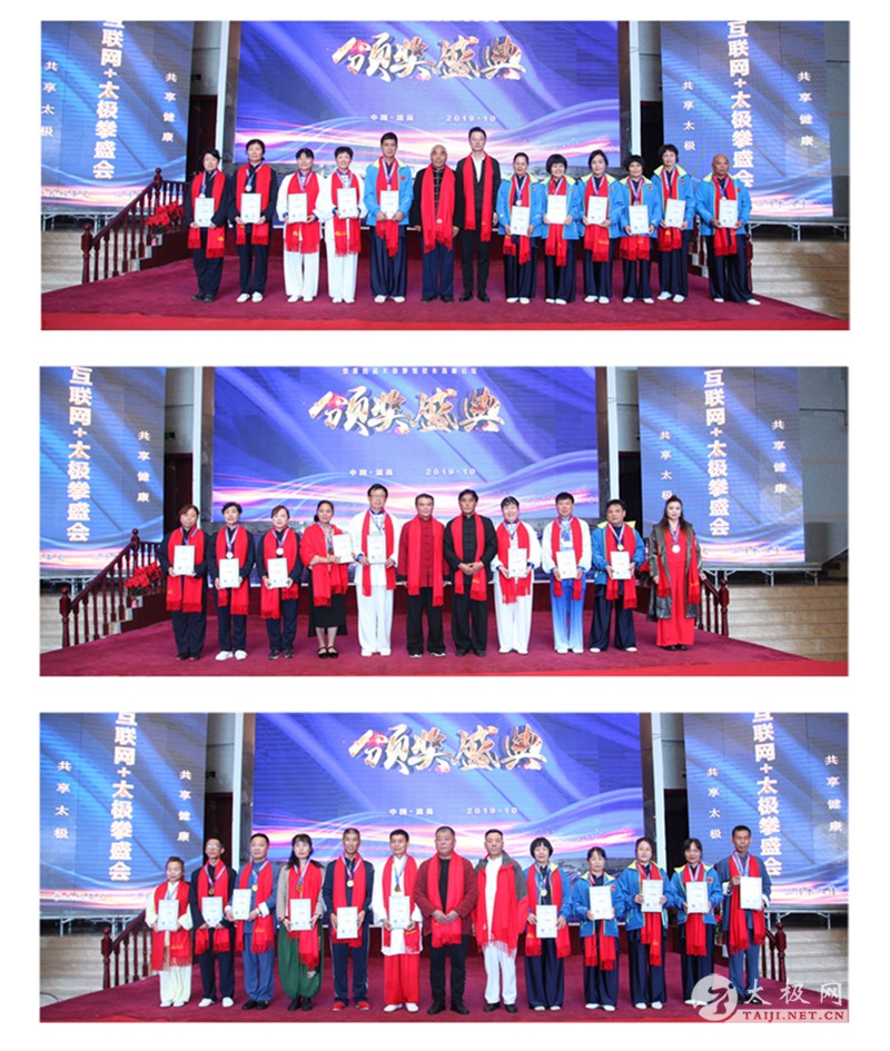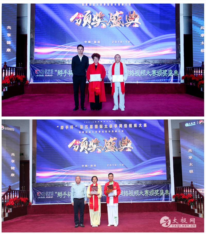 (太极网 讯)源于古温·网聚江湖英豪,属于世界·共享最美太极!10月19日,一年一度的“互联网+太极拳”年度盛会、国际太极拳网络视频大赛颁奖盛典在太极圣地中国温县盛大召开。太极网广发英雄帖,来自世界各地的500余名武林英豪八方来贺,共同见证2019“搿手杯”第五届国际太极拳网络视频大赛颁奖典礼的盛世高光。各流派太极拳名师名家、各地优秀太极拳馆校长及协会机构负责人出席助阵,点燃“最美太极人”的璀璨荣耀。源起2005年的首届国际太极拳DV大赛,互联网时代,平台与技术的升级迭代······十年磨一剑!自2015年首届国际太极拳网络视频大赛问世至今,五届大赛持续高燃,凭借太极网20余载深厚沉淀,传统文化与网络新媒完美结合,太极人的风采通过网络视频遍传全球,刷新口耳相传之方,再造千万人互动分享热潮,呈现太极文化国际传播的时代大格局。 温县太极拳武术文化管理中心主任任海林,温县文化馆馆长、县非物质文化遗产保护中心主任闫忙种,温县武协秘书长朱志淳,深圳大美投资有限公司董事长刘洪恩,武夷山市农产品协会秘书长、武夷山市(大师堂)生态科技茶叶研究所董事长张思成,港中旅保险经纪公司总经理助理兼河南分公司总经理李守勋,著名太极文化研究学者赵地生,河南百养堂生物科技有限公司董事长李红强,汝州辛可瓷业有限公司董事长魏向阳,黑龙江德熹农业有限公司焦作总经销商陈凤岭,温县海旺弘亚温泉大酒店总经理郑同利,太极网总编李超等嘉宾出席。 来自全国各地的各流派太极拳名师名家、太极拳机构负责人李树发、李德祥、解礼德、孙建国、杨合发、宋斌、范德治、刘国明、张思成、郑广济、梁正雨、宋宪起、陈西立、吴颖锋、张世昌、职永成、董丰电、冯贵宏、王运宜、张勇刚、张明、董曙光、张辉、陈庆峰、王林、薛奇英、白惠霞、宦柔伊、苏德发、张振龙、马波、陈玉勇、崔法强、冉涛、梁翠平、陈彦胜、褚亚龙、贾洪波、郭社伟、唐艳华、陈茂伟、翟文胜、崔白云、宋岳明、沈国良等出席盛会。 太极拳发源地温县的名师名家陈照森、党振喜、陈清环、王长江、王战军、陈桂珍、陈春爱、陈有刚、陈有华、陈大虎、陈军团、陈大冠、常子轩、段卫星、陈朝霞、王国营、田培亮、张世庆、陈志伟、白海军、冯树理、陈小水、陈长虹等到场助阵。 与此同时,颁奖盛典得到了太极网战略合作伙伴武夷山市(大师堂)生态科技茶叶研究所、宜兴两仪堂太极紫砂文化研究所、杏好有你酒业股份有限公司、汝州辛可瓷业有限公司、河南百养堂实业有限公司等大力支持和赞助。 本届大赛从作品收集到展播至颁奖盛典,历时半年。赛事期间,大赛火炬燃遍国内诸多城市,乃至国外掀起热潮。2000余名太极人齐奏太极曲,助推中国太极文化走向世界。大赛全体同台展播历时五天,平台累计网络访问量高达3600余万,投票点赞高达300余万次,广大拳友们互动留言频繁刷屏,高达4万余条,5天持续燃爆太极人的朋友圈!互联网赋能“太极拳”的盛会彰显太极盛世的璀璨高光。 国际太极拳网络视频大赛组委会主任、太极网创始人刘洪奇致欢迎辞,发自肺腑、热情洋溢!他对关心和支持活动的领导嘉宾以及来自世界各地的太极家人们表示诚挚的欢迎和衷心的感谢。他说:国际太极拳网络视频大赛自2015年创办,至今已成功举办了五届。五年来,在广大太极人的关注和支持下,大赛规模不断刷新,影响力不断加大,品牌效应不断增强。在办好主场赛事的同时,应各地区太极拳组织的要求,多次主办或承办了各地(区域性)的太极拳网络视频大赛,这些活动对当地的太极拳传播发展起到了积极推动作用。 值得一提的是,为积极响应国家体育总局大力推广太极(八法五步)及全面健身和健康中国等政策号召,2019年太极网创新主办了“大拳师杯”首届太极八法五步视频大赛,取得了令人振奋的赛事成果,掀起八法五步网络大潮。今后组委会将把八法五步统一纳入到网络视频大赛的平台上。第六届国际太极拳网络视频大赛将新增太极拳推手(搿手道)表演赛,丰富和优化大赛层级及格局。 刘洪奇对太极网近年来整合资源重磅打造的“太极与远方”系列品牌赛事活动进行了阐述和解读,并对接下来重点打造的赛事品牌“搿手道”进行了介绍。推手在陈家沟俗称为“搿手”,“搿”字含义丰富,是手与手相合,是合作前提下的对抗训练。“搿手”是我们对推手赛事的重新定义和挖掘。当天下午的第四届太极拳馆校长高峰论坛上,刘洪奇深入讲述了“搿手道”的含义、运作模式、共享合作模式等,引起了参会者的极大兴趣和热烈反响。 任海林对视频大赛的成功举办表示祝贺,他高度评价了太极网以网络平台开展武术赛事活动的创新和格局。太极网扎根太极圣地温县,面向全球,引领太极文化传播20余载,对太极拳的传播和发展做出了巨大贡献和成就。同时向获奖的拳友表示祝贺,希望他们珍惜这份荣誉,更加注重个人拳技和修养,将自己的人生与太极拳的发展紧密结合起来,主动承担起传播太极拳的重任,争做最美太极人。 本届大赛各项目获奖选手、团队依次上台领奖,与会嘉宾分别为获奖选手颁发证书及奖牌。 唐艳华、冯贵宏代表获奖选手发表感言,唐艳华分享了她连续四年组织团队参赛的经验和体会,高度赞誉了大赛平台及太极网,并建议大赛