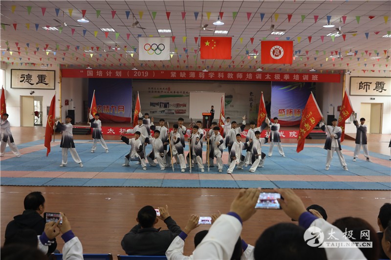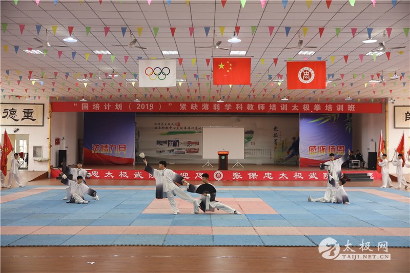 (太极网报道)2019年10月22日上午,焦作大学“国培计划(2019)”紧缺薄弱学科教师培训太极拳培训班的学员一行100余人,来到温县职教中心张保忠太极武院进行观摩考察活动。 首先,武院执行院长马斌介绍了武院的基本概况,他说:张保忠太极武院作为焦作大学太极武术学院的生源和实训基地,双方本着“教育资源共享,教学优势互补”的原则,开展了深入有效地合作办学工作,收效明显,社会关注度和影响力逐步扩大。 武院的表演团队为大家奉献了精彩的武术节目表演。随后,张保忠太极武院院长、太极拳名家张保忠为大家展示了刚柔相济的太极拳拳法,赢得了全场的喝彩。 据了解,10月31日,参加“国培计划(2019)”的第二批学员约100余人将再次来到这里开展观摩考察活动。此次活动的组织方,焦作大学太极武术学院院长王友军、院办公室主任程涛、院教学办主任王勇、专修课教研室主任侯强、教师牛建华等一同参加。 本站责编:张欢 |