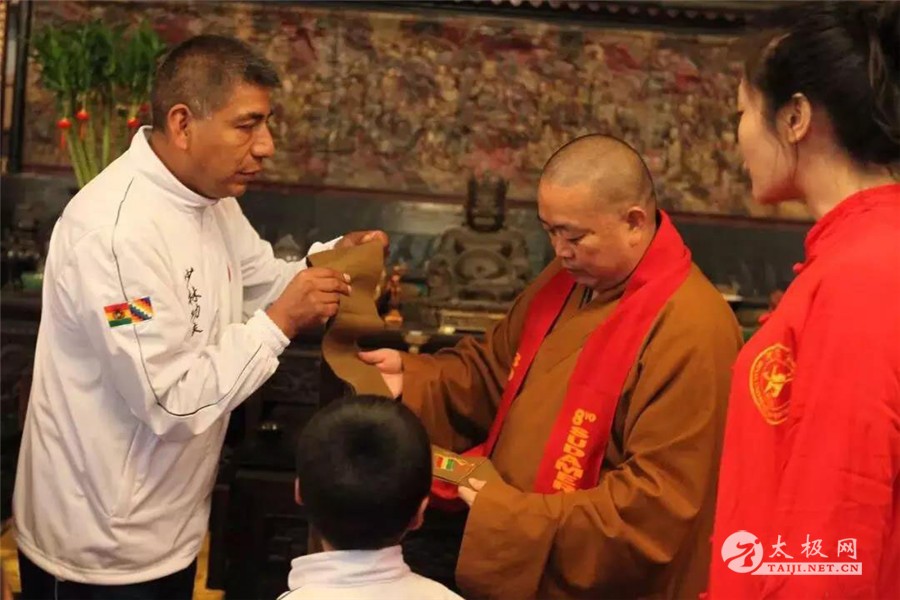 国际友人- 费尔南多在礼太极师徒的欢迎宴上表达了对中华文化和太极传承的认可与敬意 2019年10月23日,爱好中华武术和中国太极的玻利维亚前外长费尔南多一行访问礼太极,并登门拜访中华奇人武当悟性气功代表人物师公陆国柱大师。 陆国柱大师已有90岁高龄,是中华奇人九项吉尼斯纪录保持者。面对玻利维亚前外长费尔南多一行,陆国柱大师表示热烈欢迎。有缘相识,以武会友。陆国柱大师与费尔南多进行了亲切交谈,并表示:武术没有国界,欢迎外国友人到访中国交流学习,中华武术不仅要走出去,还要迎进来,让中华武术成为闪耀世界的中国名片。 玻利维亚前外长费尔南多表示:中华武术令人神往,陆国柱大师令人敬佩,感谢陆国柱大师的接待,期待下次的相聚,同时欢迎各位到玻利维亚做客。费尔南多先生还向陆国柱大师赠与“武”字锦旗,以示真诚敬佩之心。 陆国柱大师向费尔南多先生赠与“禅”字书法 中国是礼仪之邦,讲究投之以桃,报之以李。陆国柱大师不仅分享了自己多年来的练武心得,还现场挥毫泼墨,书写蕴藏了中国哲学智慧的“禅”字,赠与费尔南多先生。 陆国柱大师现场表演武当气功绝技 现场记者 陆国柱大师兴致高昂,在玻利维亚外长费尔南多一行和电视台新闻记者新民晚报记者的见证下,又一次破了吉尼斯最高纪录。他不仅现场演示口吞31把宝剑,还表演了二指禅,口吞宝剑同时踩钢刀、踩灯管等武当气功绝技,看得现场人员心惊肉跳、屏息凝神、汗毛竖起,纷纷表示有缘见识到如此盖世神功,三生有幸。 费尔南多与解礼德 作为此次“以武会友”接待玻利维亚前外长费尔南多一行的东道主,礼太极运动和养生研究院院长、太极拳名家解礼德老师特地携师徒亲友举办家宴,迎接费尔南多一行的到来。家宴上气氛热烈和谐,以武会友,共话情谊。 解礼德在太极圣地陈家沟给众多外国友人授课 礼太极运动和养生研究院院长、太极拳名家解礼德老师多次在陈家沟授课,其中不乏来自世界各地的外国友人。礼太极运动和养生研究院始终坚持“传承太极之魂,分享养生之道”的宗旨,致力于帮助大家学习太极拳,积极传播推广太极拳,同时分享养生之道,助力健康中国,共享太极,共享健康。 费尔南多简介: 费尔南多全名费尔南多·瓦纳库尼·马马尼。是玻利维亚前外交部长。费尔南多的母亲酷爱武术,他从小耳濡目染,深受母亲影响。18岁那年,费尔南多第一次在玻利维亚见识到正统中国武术。那时候,他亲眼看到少林僧人纯正的中国功夫,便产生了浓厚兴趣,并立志到中国的武林圣地“取经”。直到33岁,费尔南多才如愿以偿。 费尔南多在少林寺 费尔南多回忆道,在1999年12月,他终于到达少林寺。那时候特别希望能够拜师学艺,但是寺里师父却拒绝了他。也许诚心所致,费尔南多在寺门外坚持跪了几个小时始终不愿离开,终于感动了师父,被允许踏进寺门。经过一周的超强度训练考验,费尔南多被寺里师父留了下来。在此后整整三年时间里,他与少林寺僧人同吃同住,学少林功夫、习武学精神、习少林禅学。 王毅外长和费尔南多 费尔南多向王毅外长介绍自己在《少林与太极》杂志上的专访报道 费尔南多与王毅外长共同登上《少林与太极》杂志 学成回到玻利维亚后,身为律师和历史学者的瓦纳库尼一直兼职教授少林功夫,并多次带学生到中国深造。在2017年1月被任命为玻利维亚外交部长后,瓦纳库尼依然坚持传播中国武术。 因为对传播中国武术的贡献,费尔南多先生还受到了中国外交部长王毅先生的亲自接待。《少林与太极》杂志曾用“从少林洋弟子 到一国外长”专访报道了这个醉心中华武术魅力,投身中华武术传承的中华武术铁杆粉丝费尔南多,同时他还登上了同期杂志封面。2018年,费尔南多先生和王毅外长共同登上《少林与太极》杂志,成为中华武术交流传播的一段佳话。 费尔南多与少林寺师父及众人合影 2017年8月12日,费尔南多先生访华时专程回少林寺拜访,感恩师徒情谊。 责任编辑:太极网小闫 |