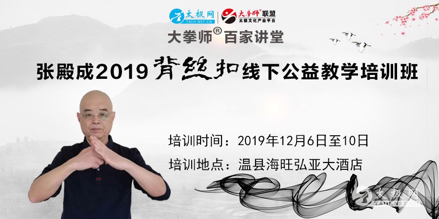 中原武禅迎来客,入殿为求学艺成! 张殿成,太极拳民间学者,一位德艺双馨、特色鲜明的太极人,多年来务实深耕,培养和传授的学员遍布各地,影响卓著。 作为大拳师百家讲堂的主讲人, 张殿成老师的网络教学课程(点击观看)自上线以来备受关注,引发全国各地拳友的强烈好评,纷纷表示干货十足、颇有受益。 应广大拳友的强烈要求,经张殿成老师与太极网·大拳师联盟商讨决定,特在温县海旺弘亚温泉大酒店开设为期五天的线下培训班,培训设在太极圣地河南温县,让拳友学艺之余,还能观光旅游河南的两大文化地域“陈家沟和少林寺”,领略太极拳和少林功夫的魅力! 此次培训班仅限50个名额,课程内容由张殿成老师根据广大拳友的反馈进行反复的推敲设计确定,力求让参与培训的学员学有所得。 一、培训时间 2019年12月6日–10日 二、培训地点 温县海旺弘亚大酒店 三、培训内容 背丝扣是什么 背丝扣的功用与练法 内旋与外旋的差异 练习背丝扣的好处:防止膝关节受伤 四、培训安排 12月6日:海旺弘亚酒店 全天报到,晚上欢迎晚宴 12月7日:海旺弘亚酒店 全天培训 12月8日:海旺弘亚酒店 全天培训 12月9日:早上前往少林寺游玩及游学培训,下午回酒店泡温泉 12月10日:早上前往陈家沟游玩及游学培训,下午离会 五、报名费用 1) 培训费免费。 2) 会务费1700元/人;费用包含:4晚标准间住宿、4早餐、4正餐及4晚餐、景区门票及交通费、资料费、服装费、人身意外险等。 3) 费用不含:往返交通及收费包含项目之外的其他个人消费。 4) 汇款方法: ①开户行:中国建设银行河南省分行温县支行 户名:张惠芳 账号:6236 6824 8000 2674 755 ②支付宝账号:251230107@qq.com 明明 ③微信转账微信号:15221758169 或 18616880409 六、报名联系 电话/微信:杨超15239150487 张荣荣18239101960 固话:0391-3701997 报名截止日期:2019年11月30日 七、交通路线 1. 郑州火车站下车后到对面汽车中心站乘坐大巴到温县汽车站,在海旺弘亚酒店下车即可(约一个半小时)。 2. 郑州东站高铁站乘地铁或打车到郑州花园路汽车北站再乘坐至温县客车,海旺弘亚酒店下车。 3. 郑州机场到温县大巴车:13598507682 赵经理,乘车室在机场出口厅出门往左一直走,注意观看路标。 4. 郑州机场包车电话:15660113678 张经理 (约260元)直接送到目的地。 八、注意事项 1) 此次培训班仅限50个名额,报满即止 2) 转账成功后请将转账信息截图发送培训班会务组(上方报名联系)予以确认,且需提供姓名、地区、拳龄、联系方式、身份证号、衣服尺码等信息 3) 报到时间:2019年12月6日,报到地点:温县海旺弘亚大酒店 4) 报到时发放练功服和培训资料,晚上集体安排欢迎晚宴 5) 住宿标准由会务组统一协调安排为标间,有特殊要求的务必提前告知 6) 如有重大疾病或特殊情况需要家属陪同的,务必提前告知 附件:张殿成2019“背丝扣”线下公益教学培训班报名表.docx |