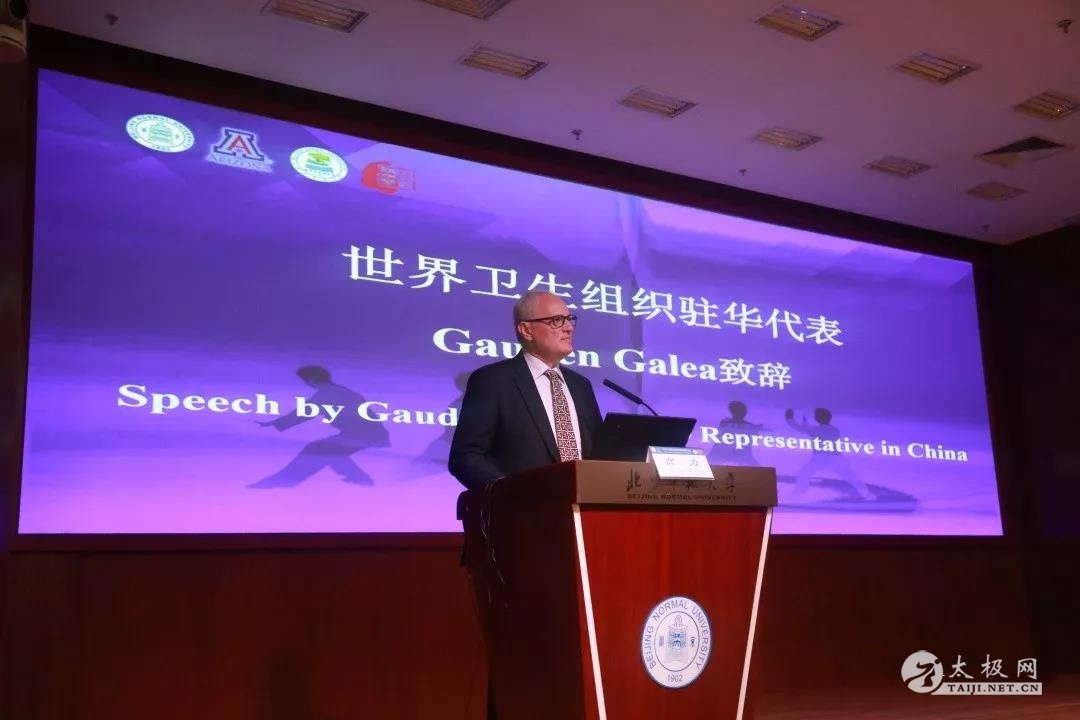 Gauden Galea先生代表世界卫生组织致辞。他肯定了中国在促进卫生改革与全民健身等方面所做的努力与贡献。他提到,健康事业还面临巨大挑战,医疗服务成本上升,慢性病、人口快速老龄化趋势等问题亟待应对。基于此,中国积极迎接挑战,通过了《“健康中国2030”规划纲要》。而中国传统医学强调通过身体平衡保持健康,这能够与基于实证的西方医疗相互联系,为人类健康做出积极贡献。