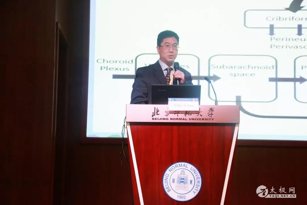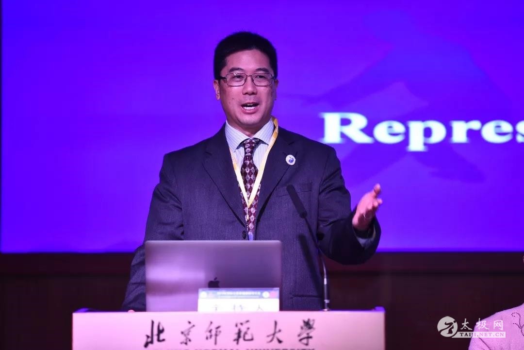 亚利桑那大学代表Phillip H. Kuo教授致辞。他首先代表亚利桑那大学医学院的院长对大会的召开表示祝贺。他认为,此次大会意义重大,不仅加深了对太极拳的科学认知,也起到了国际宣传推广的作用。同时,他表达了与北师大进一步深入合作的意向,并希望加强不同学科领域的交流。