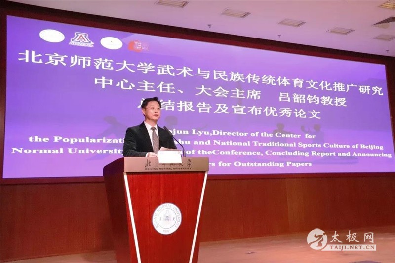 北京师范大学体育与运动学院教授、武术与民族传统体育文化推广研究中心主任、大会主席吕韶钧致闭幕辞。他总结到,此次大会获得了圆满成功。会议内容丰富,亮点突出,氛围浓厚,迈出了太极拳在新时代新时期科学化、国际化和人文素养及学科建设的重要一步。
