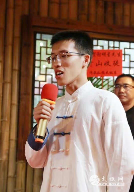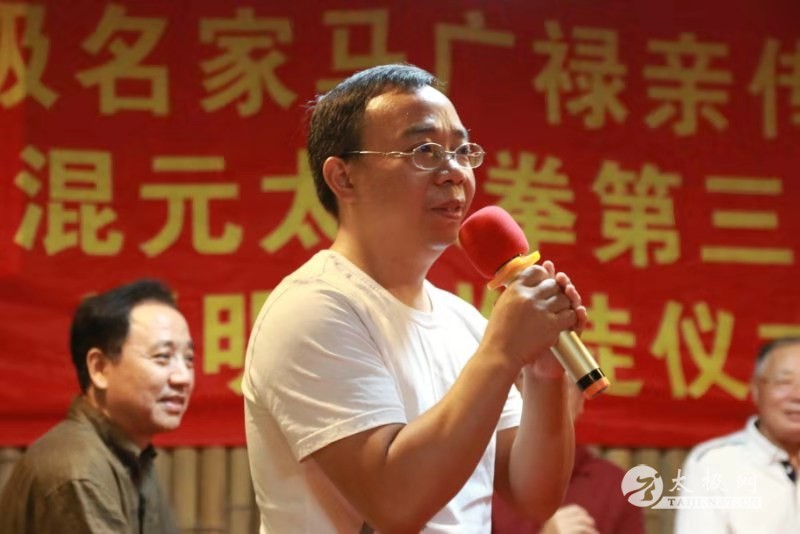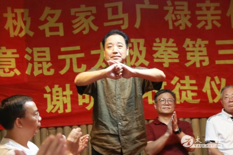马广禄致贺辞 马广禄在致辞中高度称赞谢明星对太极拳的“狂热”,充分肯定其拳技过硬、德艺兼修,同时感谢各位来宾参与谢明星收徒仪式的见证。 何显辉致贺辞,他代表香港陈式心意混元太极拳总会对著名太极拳家马广禄先生亲传弟子谢明星收徒仪式表示衷心祝贺。何显辉表示,混元太极拳自90年代在南方迅猛发展,得益于马广禄老师从北到南传习武艺致遍地开花。如今非常高兴看到他的亲传弟子再谱传承新篇章。谢明星是在马老师众多优秀弟子中的杰出代表,品格高尚、拳艺精纯,是武术界传承人楷模。希望今日拜师的门徒以师父为榜样,武德并重,不负同门期望。寄望大家携手发扬广大太极拳。 尚志刚致贺辞 尚志刚表示,谢明星多年来习拳不辍,勤学苦练,拳艺过人,同时胸怀弘扬武术、发扬传统武艺的拳拳之心。多年来大家见证了慢妙太极事业的创办和发展,今天收徒再添传承新生力量,令人振奋。 赵欣代表其父赵洪生致贺辞 赵欣代表其父亲、内蒙古通辽市陈式太极拳协会会长赵洪生,向谢明星先生收徒仪式表示衷心祝贺,赵洪生赠言:武坛奇葩,闻春风当吐艳;太极明珠,与日月而同辉。百尺竿头,发扬太极文化,传播混元内功。 文光华致贺辞 文光华代表深圳陈式太极拳专业委员会对谢明星师徒表示热烈的祝贺,感恩陈式太极拳的前辈先师,更要感恩马广禄老师对陈式太极拳艰辛付出,祝贺马广禄老师和谢明星老师桃李满园,传承发展太极拳事业。 谢明星 谢明星师承马广禄,是近代太极拳大师田秀臣和陈式心意混元太极拳宗师冯志强再传弟子,潜心跟随师父马广禄学习陈式太极拳、陈式心意混元太极拳等功法,为人淳朴谦逊、个性坚韧不拔,武医同修,大有所成。从事太极拳专业教学十余年,教学严谨,有多年系统性、专业性太极教学经验,常年应邀参加深圳市各类社会公益性太极教学活动,在私教领域有很高声誉。 收徒仪式进行中