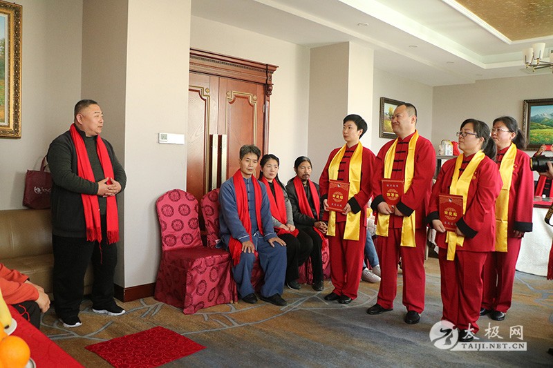 (太极网讯)2019年11月16日上午,山西省长治市陈式太极拳研究会会长兼总教练、陈式太极拳第十二代传人王红伟开山收徒仪式于长治市长治宾馆举行。郝卉霞、方立华、刘俊斌、马静静四人通过传统的拜师仪式拜入王红伟门下,正式成为陈式太极拳第十三代传人,将承担起传承太极、弘扬太极文化的责任。 陈式太极拳名师常勇主持收徒仪式,出席仪式的嘉宾有: 焦作市孟州太极拳协会会长、陈家沟太极拳推广中心技术总监常子轩 陈照森太极拳研究会林州分会会长崔法强 焦作市孟州太极拳协会总教练、常明月太极拳馆馆长常明月 长治市潞城区陈式太极拳协会会长任学用 焦作市孟州太极拳协会副会长、陈式太极拳名师张文先 陈照森大师入室弟子、陈式太极拳名师常勇 长治市陈式太极拳研究会副会长秦书红、郭瑞勤、刘晓勇、刘维斌 、张宏、郜俊峰 长治市陈式太极拳研究会秘书长刘庆江,副秘书长武建青、范树青、马春萍 陈家沟太极拳推广中心网站总编乔莲洁 “大拳师·百家讲堂”《老常说拳》栏目摄制组总编李建成 长治市邮政储蓄银行副行长周维斌 长治医学院附属和平医院工会主席李发贵等 收徒仪式遵循传统,简洁庄重。师父王红伟首先向太极拳始祖敬香,以告收徒传承再续薪火。随后弟子们依次上前向师父、师母行拜师礼,递交拜师帖,并接受师父回帖。新入门弟子在师父的带领下叩拜太极拳始祖。在众人的见证下,拜师仪式圆满完成,四位新弟子也正式成为陈式太极拳传承人。 见证人代表周维斌、任学用对王红伟老师的开山收徒表示祝贺,并叮嘱新入门弟子要谨遵师父教诲,团结同道,学有所长,最后祝愿大家在太极大道上飞的更高、走的更远。 师父王红伟对新入门弟子训话,首先对新入门弟子的认真好学表示赞赏,希望弟子们在进入师门后要肩负起传承和传播太极拳的责任,携手共进,为太极文化的传播和发展做出应有的贡献。 太极名家常子轩老师为此次收徒仪式致辞,在发言中,他祝贺王红伟老师喜收门徒、开枝散叶,对他们的团队广传太极所做出的贡献表示赞扬,希望新入门的弟子能紧跟师父,刻苦学习,将陈式太极拳这门武术国粹发扬光大。 中国书法名家刘晓勇先生向王红伟老师赠送王阳明的《传习录》宝典,以此祝贺王红伟老师的开山收徒。 新入门弟子代表刘俊斌发表了讲话,对参加本次仪式的嘉宾表示感谢,要在师父的带领下努力进取,为太极拳的传承做出最大的努力。太极文化源远流长,它必将在众多太极拳传承者的共同努力下发扬光大。 王红伟简介: 王红伟, 1968年出生,山西省长治市沁县人。系陈式太极大师陈照森入室弟子,陈氏太极拳第12代传人。中国武术段位六段,一级武术裁判,一级社会体育指导员,长治市武术协会副秘书长,长治市太极拳协会常务副主席,长治市陈式太极拳研究会会长,长治市德成陈式太极拳俱乐部主教练。 本站责编:张欢 |