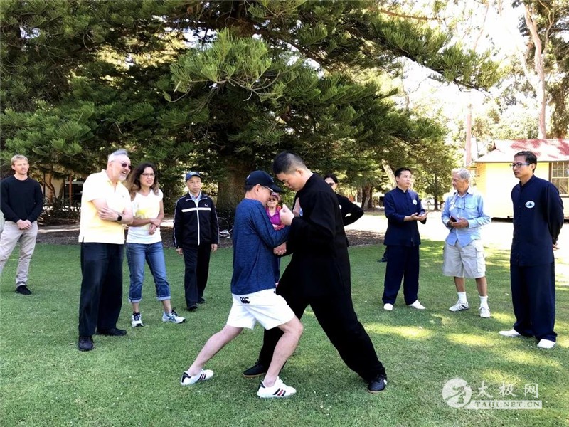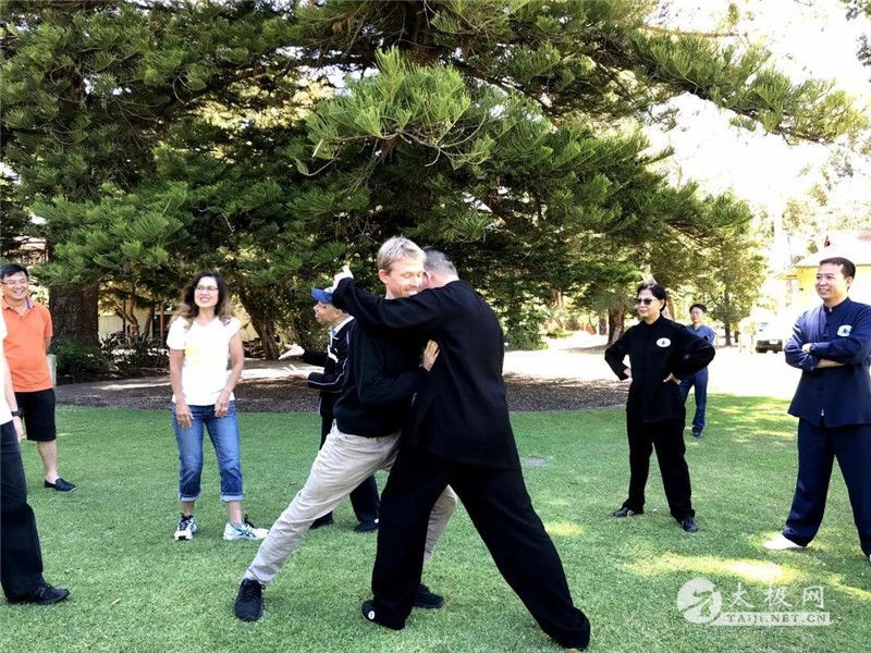11月29日上午,陈家沟太极拳学校总教练、陈氏第二十世嫡宗传人陈自强老师及其教练团队一行六人在西澳大学孔子学院成功举行了太极拳交流活动。近三十位太极拳爱好者齐聚一堂,其中许多是来自西澳大学每周六的太极班的学员,大家一起切磋、交流。西澳大利亚太极拳协会会长张仁萍 、西澳大学孔子学院中方院长徐沁等嘉宾出席了此次活动。 陈自强带领大家习练陈氏太极拳 陈自强先生及其教练团队、西澳太协成员与嘉宾合影 太极拳,作为中国国家级非物质文化遗产,是一种集颐养性情、强身健体、技击对抗等多种功能为一体的内外兼修、刚柔并济的拳术,因此受到了全世界众多人的喜爱。为了更好地传播与弘扬中华优秀太极文化,陈自强老师及其教练团队来到了西澳大学孔子学院,和当地的太极拳爱好者进行交流互动,亲自将陈氏太极拳展现给大家。 张仁萍会长与陈自强老师及其教练团队合影 (从左至右依次为:张仁萍、周晓钢、闫子腾、陈自强、张宗军、马力、李小华) 在陈自强老师及其教练团队参观完西澳大学孔子学院后,大家齐聚在孔子学院前的操场上,沐浴着珀斯的阳光,呼吸着天地之气,一起感受太极之魂。首先是由闫子腾教练带领大家一起习练陈氏十九式太极拳。陈氏十九式太极拳短小精辟,却不失陈式太极拳的风格及特点,在闫教练的示范和讲解下,大家都打得有模有样。 太极拳教学环节过后,是有趣的太极拳互动环节,主要是进行捉对交流。学员们都跃跃欲试,想要感受真正的太极拳的力量。张宗军教练亲自上阵和大家进行捉对练习。现场的两位男学员Glenn Bowman和Jimmy先后进行了挑战,但是始终无法推动张教练。两位都表示第一次亲身感受到了太极拳深厚的力量,感触颇深,认为自己还需要在学习太极拳的路上更加努力。 太极拳学员Glenn Bowman与张教练练习 太极拳学员Jimmy与张教练练习 最后,陈自强带领大家一起习练太极拳,其教练团队也加入学员队伍,大家以整齐划一的姿势打出陈氏太极拳法,将现场气氛推向高潮。中午时分,持续近两小时的太极拳交流活动圆满结束。这一次活动不仅为珀斯当地的太极拳爱好者提供了一个近距离接触太极文化的机会,也是促进太极拳爱好者和太极拳教练相互交流的契机,让中国的太极文化更好地走向世界。 本站责编:张欢 |