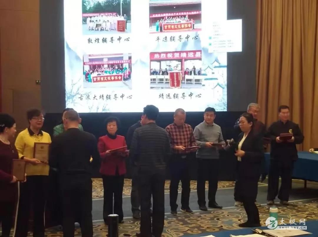 “闻鸡起舞强筋骨,和谐太极健身心”,在岁暮冬寒之际,甘肃省太极拳协会2019年会暨换届大会于2019年12月4日下午在兰州宁卧庄宾馆隆重召开,甘肃省太极拳协会各辅导中心、辅导站会员及代表近200人参加会议。 应邀出席会议的嘉宾: 甘肃省民政厅社会组织管理局调研员何平庆 甘肃省体育局领导殷进福 甘肃省武术协会秘书长段俊文 甘肃省武术协会段位办主任王志勇 刘建华会长作工作报告 首先由会长刘建华女士作工作总结,刘会长对协会自成立五年来的发展历程和取得的成绩作了回顾,对班子成员以及各辅导中心、辅导站所做的工作给予肯定,并致以诚挚感谢。希望协会在新一届理事会的带领下继续推动太极拳健身普及和传承,为甘肃全民健身做出更大贡献。 甘肃省武术协会段俊文作了重要讲话,他指出甘肃省太极拳协会在刘建华会长的带领下,克服重重困难,从发展到不断壮大做出了重大贡献,对甘肃武术发展起到了排头兵作用,对甘肃省太极拳协会所做的成绩表示衷心感谢,希望甘肃省太极拳协会继续传承好中华国粹太极,为甘肃全民健身继续奋斗。 甘肃省武术协会副会长关巧玲宣布表彰决定,文件指出,为激励先进,学习先进,经民主推荐,层层选拔,推选出了思想素质过硬,乐于奉献,不图回报,在本年度工作中做出突出贡献的文县辅导中心等8个先进集体、王刚等26名先进个人予以表彰。希望受到表彰的单位和个人谦虚谨慎,再接再厉,锐意进取,为甘肃省太极拳事业做出更大贡献。 左起: 张水信(副会长) 岳 煜(副会长) 施爱香(副会长) 刘建华(会 长) 瞿金叶(副会长) 关巧玲(秘书长) 秦 川(副会长) 张小武(副会长) 王 刚(副会长) 2019年先进集体和先进个人名单 一、先进集体(8个) 1. 甘肃省太极拳协会文县辅导中心 2. 甘肃省太极拳协会西部欢乐园辅导站 3. 甘肃省太极拳协会土门辅导站 4. 甘肃省太极拳协会五泉辅导站 5. 甘肃省太极拳协会小西湖辅导站 6. 甘肃省太极拳协会天源彩虹辅导站 7. 甘肃省太极拳协会靖远辅导站 8. 甘肃省太极拳协会大靖辅导站 二、先进个人(26)人 王 刚 闫继平 马金凤 刘 琪 张生彦 李 辉 张秋平 李 芳 张 聪 刘红英 何兴虎 陈吉秀 张小平 李秀武 余 义 周晓梅 常 莲 李德真 贾仲娥 傅 山 李万荣 相 柏 李桂芳 张国瑾 张正涛 马雅丽 三、特殊贡献奖(三人) 赵爱云 蔺彩莲 连飞雨 先进集体领奖(部分) |