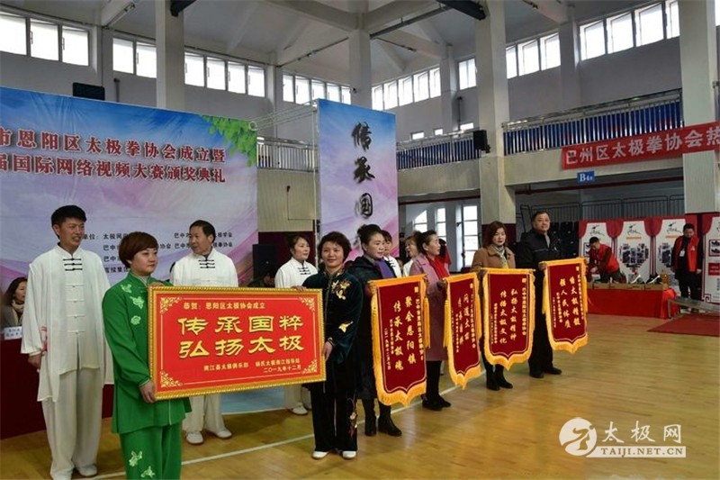 (太极网巴中站讯)由太极网巴中分站、巴中市杨氏太极拳协会、巴中市巴州区太极拳协会、巴中市恩阳区太极拳协会筹备的巴中市恩阳区太极拳协会成立暨第五届国际太极拳网络视频大赛巴中站颁奖典礼2019年12月7日在巴中市恩阳区古镇进行,来自巴中市周边地区300余名太极拳爱好者一大早齐聚恩阳新学区体育馆,共襄盛会。 出席盛会的领导和嘉宾有: 恩阳区民政局副局长白永强 恩阳区科技教育和体育局领导何久洲 巴中市老年协会副会长屈心民 巴中市永年杨氏太极拳学会会长姜正礼 巴中市太极拳协会副会长陈仕国、孙毅 巴中市柔力球协会会长姜玉琴 巴中市巴州区太极拳协会会长王芹 南江县太极拳俱乐部、永年杨氏太极拳学会副会长谢忠 巴中市永年杨氏太极拳学会正直辅导站站长何永述 恩阳区老年体育运动协会会长樊春安 巴中市言续集团总经理周华 恩阳区宏耀旅行社经理杨璐曼 成都市体育运动协会周敏 民政局局领导宣读关于同意成立巴中市恩阳区太极拳协会批文,科技教育和体育局领导分别讲话,并为协会授牌授印。 恩阳区太极拳协会首届会长向琼芳女士致词 祝贺单位赠送贺匾和锦旗 恩阳区老年体育运动协会会长樊春安致贺词并赠送贺礼,他希望两个协会在今后共同合作,为本地区的全民健身共同努力。 太极网巴中分站站长姜正礼宣布第五届国际太极拳网络视频大赛颁奖典礼开始,并作了前四届国际太极拳网络视频大赛的成绩总结和下届参赛工作布置的讲话,太极网巴中分站副站长屈心民宣读由太极网、大拳师联盟网、“搿手杯”第五届国际太极拳网络视频大赛组委会发来的贺信。太极网巴中分站夏琼宣读获奖集体单位和个人名单,随后举行颁奖仪式。 优秀节目展演 本站责编:张欢 |