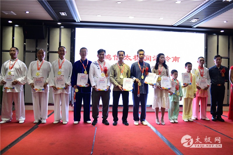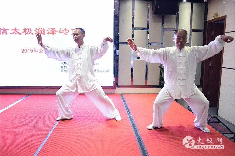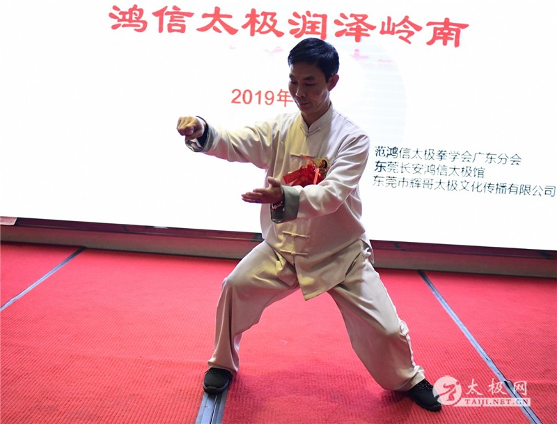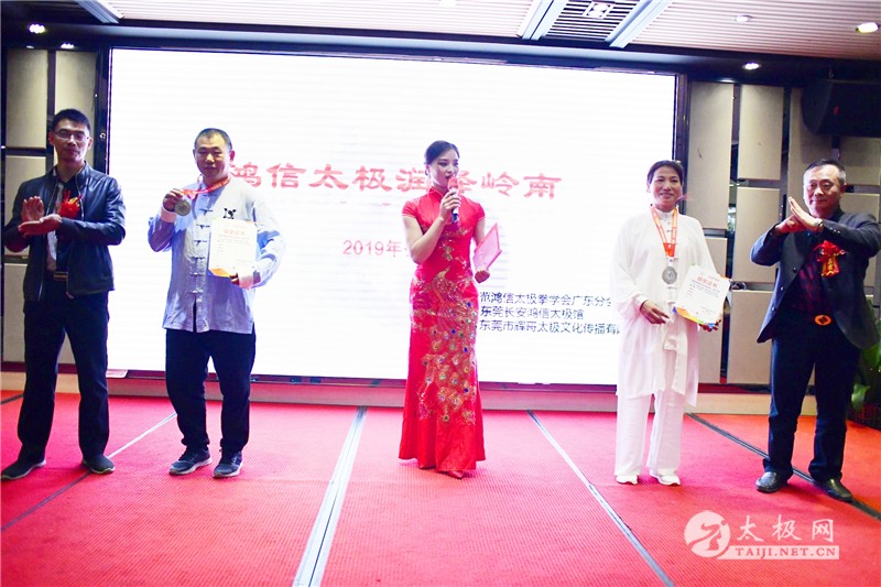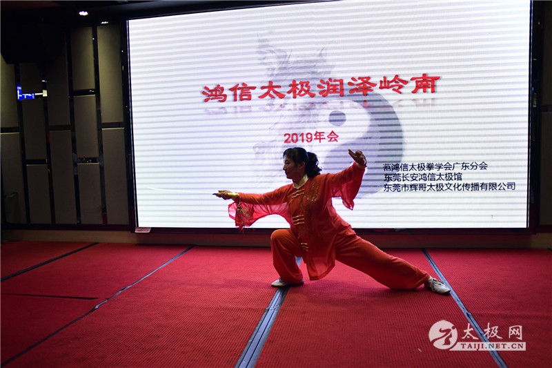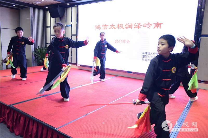 (太极网报道)鸿信太极润泽岭南,群英荟萃共襄年会!12月14日,2019鸿信太极年会暨东莞市第二届市民运动会颁奖盛典在东莞市长安镇潮洪渔邨举行,两百余名拳友欢聚一堂,太极会友,共襄盛会,年会和谐热烈的交流中,交心、交朋友。 中华民族历史悠久,文化瑰宝数不胜数,太极文化更是独树一帜。2003年,国际太极拳大师范鸿信莅临东莞长安授拳,从此,东莞长安就刮起了学习陈氏太极拳的热潮。2004年,范老的弟子们秉承“弘扬太极文化,传播国粹艺术,全国普及太极,全民分享健康”的理念,成立范鸿信陈式太极研究会及东莞长安鸿信太极馆。拳馆成立以来,数以百计的太极爱好者在此学习正宗正源的陈氏太极拳。 年会由范鸿信研究会广东分会、长安鸿信太极馆共同举办。出席活动的嘉宾有: 东莞理工学院何先义教授 中央国学频道《精彩中国》栏目外联部主任、CC丅V乡情栏目专题部主任、新华卫视广东频道执行主任、深圳市传统艺术文化促进会执行会长黄赐桃 东莞市武术协会执行主席梁华国 东莞市武术协会副主席、东莞市和鸣教育集团董事长、大湾区红色研学基地董事长黄桂平 东莞市武术协会副主席、和鸣教育集团执行董事、大湾区红色研学教育基地执行董事张明刚 东莞市武术队总教练李占锋 东莞市武术协会会员部部长袁敏东 摄影家协会副会长、政府机关报记者占有兵 港湾医院孟令创院长、河南省美术家协会常务理事、长安美术家协会副会长程海中 新华卫视广东频道办公室主任、深圳市传统艺术文化促进会会员部部长邓芳 书法家协会孟庆温 信太集团董事会主席张瑞辉 龙泽集团董事长叶选品 东莞长安鼎超五金制品有限公司董事长罗亿华 东莞市华泽精密压铸科技有限公司董事长徐乐魁 东莞市益庆吸塑制品厂董事长陈常川 东莞市欧玛机床配件有限公司董事长王东飞 长安户外精英队队长吴飞扬、曾刚红 孝琴家园环保油漆董事长许明琴 东莞市龙湖工贸有限公司董事长吴荣忠 东莞市博特心理服务中心导师、中港教育心理研究院副主任袁素红 东莞长安明涛五金有限公司总经理李久明 深圳市小脚印时尚科技有限公司、广州工匠师百货销售有限公司总经理阳小明 长安健康生活馆、高级康复理疗师叶伟红 东莞市太极拳协会监事长谢连安 东莞市武术协会理事、厚街德武馆馆长罗博 东莞市武术协会理事、太极拳名家马兴荣 太极拳名家穆凤丽 2017年、2018年最美太极人唐湘生 2019年最美太极人蔡锡文 陈式太极拳第十二代优秀传承人、2017年最美太极人获得者黄榜知 陈式太极拳第十二代传承人、2017年最美太极人黄锦锡 东莞市武术协会理事、优秀教练员陈龙溪 陈氏太极拳十一代传承人、鸿信太极主教练米红刚 广州茶缘空间高级茶艺师、副总经理吴彩金