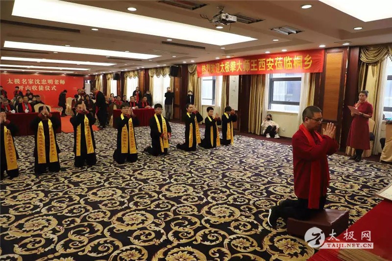 12月22日上午,陈式太极拳第十二代传人、太极拳名家沈忠明收徒仪式在浙江省桐乡市举行。王建昌、韩超、魏超、施云飞、郭煜侃、唐欣仪、朱佳航、张绣予八名太极拳爱好者经过重重考验拜在沈忠明老师门下,正式成为陈式太极拳第十三代传人。国家非物质文化遗产陈氏太极拳代表性传承人王西安、王西安拳法研究会会长阎素杰带领众弟子齐聚桐乡,共同见证这一传承盛况。 陈家沟王战国院院长兼总教练王战国、陈家沟虎啸太极拳学校总教练陈三虎、宁波慈溪会华武馆馆长兼总教练孙会华、深圳太极宏鑫俱乐部董事长沈健、王西安拳法研究会温州分会会长徐胜、阿里巴巴马云特别安全助理兼太极禅院总教练李天金、阿里巴巴太极禅院教练刘超、李俊杰,陈家沟尚德武馆馆长兼总教练刘彦等众多太极名家,以及浙江医科大学第一附属医院心血管科主任高丹忱等社会知名人士也到场祝贺。 针对沈忠明老师提出的开山收徒的申请,通过王西安拳法研究会的前期考察,王西安大师认为其符合收徒条件,准予沈忠明老师开山收徒,并亲自授牌。 收徒仪式 收徒仪式现场庄严古朴。王西安、沈忠明师徒首先向武神关圣帝君、太极拳始祖敬香,以告收徒传承再续薪火。随后弟子们诵读敬表文,依次上前向师父行拜师礼,递拜师帖,敬拜师茶!沈忠明老师分别为入门弟子披弟子服,颁发传承书。新弟子在师父带领下叩拜太极拳始祖。 王西安拳法研究会会长阎素杰作为见证人,对新弟子寄予殷切厚望,阎素杰表示,一日为师,终身为师,愿师徒教学相长,刻苦练习,将陈氏太极拳王西安拳法发扬光大! 沈忠明老师致辞 沈忠明首先感恩遇见师父,感恩通过太极拳和大家走到一起,共同交流太极,交流生命的意义和价值,共同探讨人类的健康进程。沈忠明说,一个人的力量是微不足道的,所以我们需要传承,这种国粹的传承、需要新生的力量,他们比我们更有智慧,有继承才有发展!共同去完成这种思想、力学,医学更完美的结合,真正去满足,现代生活的需要,为人类的健康和快乐、武学的力学、运动科学的传播奋斗终身! 新入门弟子王建昌表达入门心愿。王建昌表示将会与众同门一道,严守武德,尊师重道,遵守门规,为弘扬和传播王西安大师拳法奉献终身。 桐乡市武术协会名誉主席、乌镇武协主席陈松贤对沈忠明老师收徒表示祝贺,希望新入门弟子要传承好太极拳,为王西安拳法的推广与普及做出积极贡献。 在众人的见证下,拜师礼仪圆满完成,八位新弟子正式成为陈式太极拳传承人。 据了解,沈忠明老师是浙江嘉兴桐乡人,十岁开始习武,素爱技击,学过形意,南拳、少林、戳脚等多种武术,并系统了学习了现代格斗和擒拿。他1989年进入公安系统工作,有着过硬的政治素质和业务技能,在打击犯罪保一方平安中作出过突出贡献!2005年10月,他与夏长河老师一起创立了王西安拳法研究会桐乡分会。自2005年拜王西安大师以来,沈忠明老师谨遵师训,认真训练,钻研武学,遵守武德,为传承中华武术孜孜不倦,并被多家武馆聘请为名誉会长、技术顾问等职。这些年他一直追随王西安大师左右,得老师亲自指点,收获很多! 为了托起一切与太极有缘之人,王西安拳法研究会对每次收徒仪式的举行都非常重视,一个月前各项筹备工作都已经开始。这次收徒仪式由王西安拳法研究会全程组织、参与、指导,旨在通过标准化、规范化流程,使新入门弟子能够在古法传承中感悟中华传统文化的无穷魅力,承担起传承太极拳、弘扬太极文化的责任。下一步,王西安拳法研究会将会致力于推动传承体系标准化建设工作,更好地推动太极拳传承、普及工作。 太极展演 展演视频 收徒仪式开始前,太极名家王战国、陈三虎、李天金、孙会华等进行太极拳、推手展演,赢得到满堂喝彩。 本站责编:张欢 |