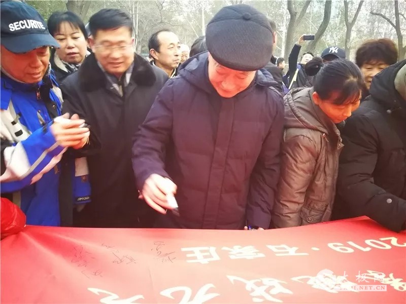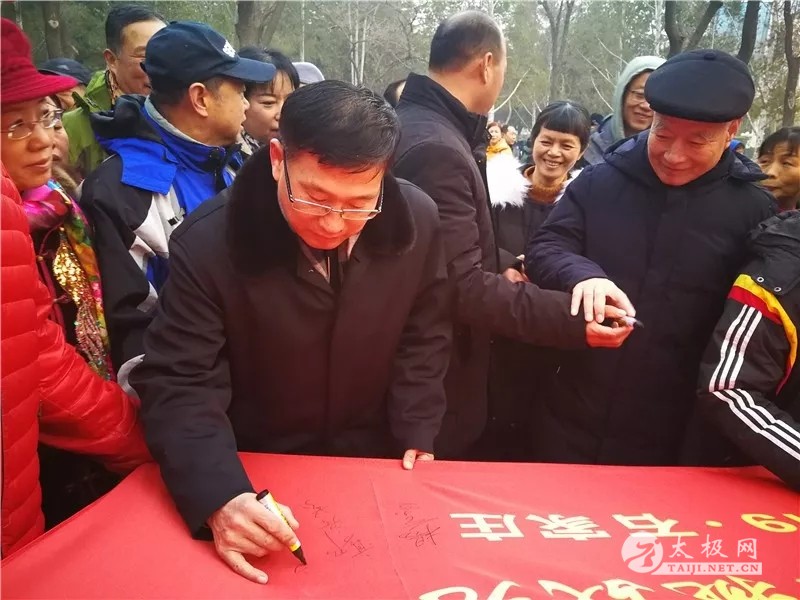 杨合发讲话 启动仪式上签名 22日早在石家庄长安公园,包括山东、江苏、湖北、上海等地师兄弟、拳友在内的传人、拳友们在杨合发校长的带领下,同练陈氏太极拳,为全国挑战九九活动启动加油助威。 启动仪式回放