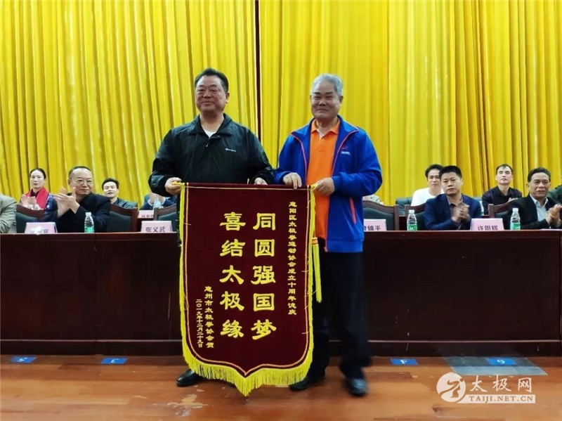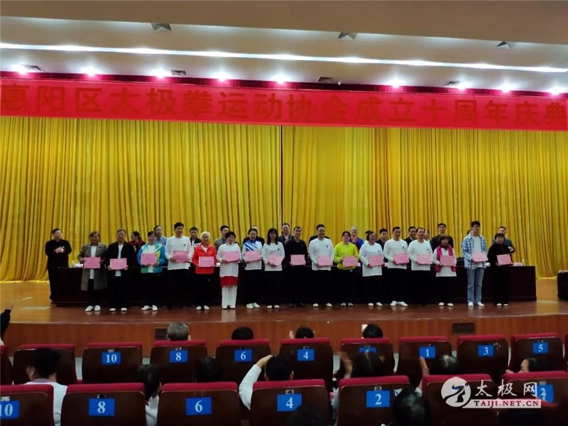 2019年12月29日上午,惠州市惠阳区太极拳运动协会成立十周年庆典活动在惠阳区体育会展中心隆重举行。 惠阳区文广旅体局党委副书记刘学燕,惠阳区社会组织党委专职副书记许周辉,惠阳区关工委常务副主任邓雪京、副主任陈楚明、副主任孙乐园,惠阳区社科联主席卢舜辉,惠州市太极拳协会会长曾镇平、副秘书长彭爱华,大亚湾区武术协会会长陈钇霖、副会长杨宏伟、副秘书长樊萍萍,东风本田太极拳协会会长刘善容、理事长廖礼玉等领导和嘉宾及惠阳区太极拳运动协会近400名会员代表参加了本次庆典活动。本次庆典大会由惠阳区太极拳运动协会常务副主席廖建新主持。 惠阳区太极拳运动协会张义武主席宣布庆典大会正式开始,协会终身名誉主席林正松在会上发表致辞,介绍了协会成立十年来的发展历程和取得的成就。 受邀参加的惠州市太极拳协会曾镇平会长为惠阳区太极拳运动协会成立十周年赠送锦旗,张义武主席代表协会接受锦旗。 曾婷宣读第三届协会组织机构名单 刘学燕为终身名誉主席林正松、主席张义武颁发当选证书 许周辉为名誉主席曹健、名誉主席王天浩颁发证书 卢舜辉为协会监事会代表颁发当选证书 张义武主席为协会副主席、秘书长颁发当选证书 惠阳区太极拳运动协会副主席曾婷在会上宣读了第三届协会组织机构名单,惠阳区文广旅体局党委副书记刘学燕为终身名誉主席林正松、主席张义武颁发当选证书;惠阳区社会组织党委专职副书记许周辉为名誉主席曹健、名誉主席王天浩颁发证书;惠阳区社科联卢舜辉主席为协会监事会代表颁发当选证书;惠阳区太极拳运动协会张义武主席为协会副主席、秘书长颁发当选证书。 惠阳区太极拳运动协会叶秀琼副主席在会上宣读了先进集体和优秀会员的表彰决定,授予协会国编套路代表队和党员服务队“先进集体”称号,授予马重光等34名同志“优秀会员”称号,与会嘉宾为获表彰的集体和个人分别授予了锦旗和证书。 随后,惠阳区文广旅体局、惠阳区社会组织党委、惠阳区关工委、惠阳区社科联的领导在会上发表了热情洋溢的讲话,他们对协会成立十年来对惠阳区太极健身运动的推动传播表示了肯定,并对以张义武主席为首的新一届领导班子寄予厚望。惠阳区太极拳运动协会名誉主席曹健最后在会上为大家分享了惠阳区太极拳运动协会创立发起的契机,并表示接下来将积极为协会创造机会,让协会会员走出国门交流传播太极拳。 最后,协会叶添娣副主席、叶向明副主席带领与会的广大会员在室外进行了八法五步、陈式精要18式和24式简化太极拳的集体展演。本次庆典活动圆满成功。 本站责编:张欢 |