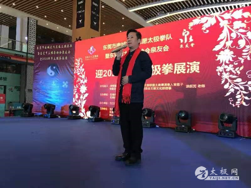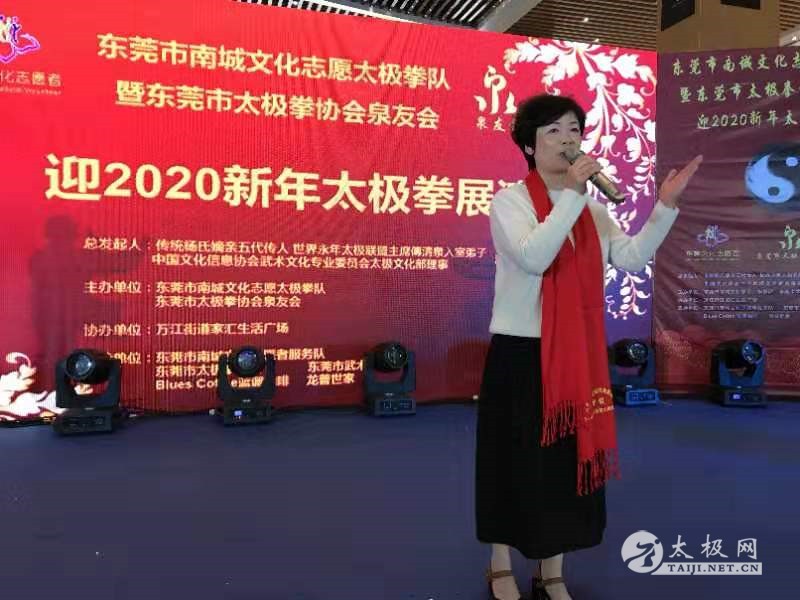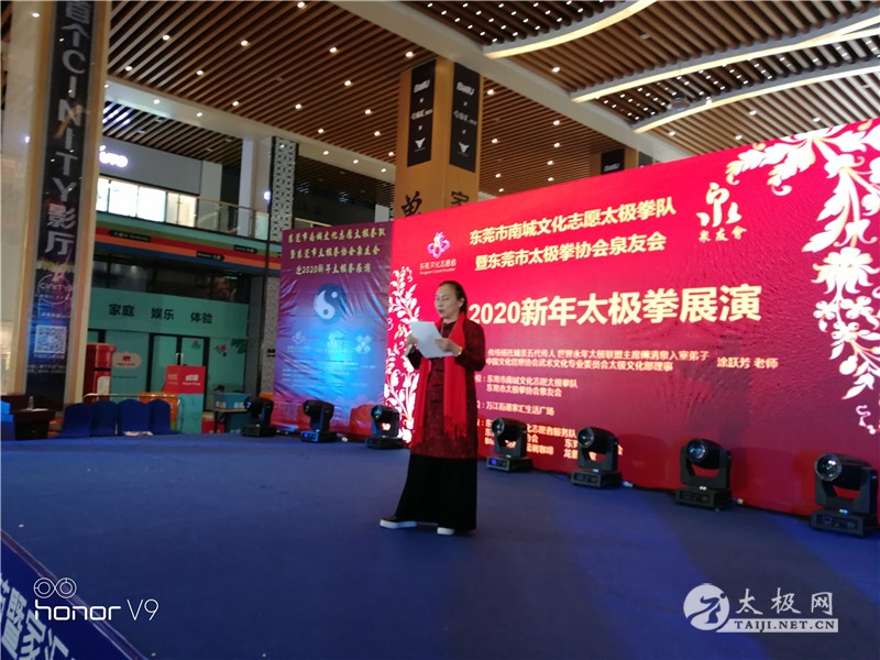 2019年12月30日上午,东莞南城文化志愿太极拳队暨东莞市太极拳协会泉友会迎2020新春太极拳展演活动在东莞南城家汇生活广场举行。 本次活动由东莞南城文化志愿太极拳队队长兼教练、东莞市太极拳协会泉友会会长兼教练、东莞市太极拳协会副会长、“太极少帅”傅清泉老师的入室弟子涂跃芳发起,东莞市武术协会执行主席梁华国,东莞市武术协会监事长、太极网东莞分站站长张辉,东莞市武术协会会员部部长袁敏东,香港国际武术总会主席冷先锋、香港国际武术总会总教练冷先锋,东莞市太极拳协会副会长朱镜辉,南城文化志愿者服务队指导老师陈俐丽,家汇建材家居馆企划部经理武凯,康宝耐惠家居有限公司游建新,东莞飞洲硕果建材贸易有限公司蒋彦洲等嘉宾应邀出席活动。 南城文化志愿者服务队指导老师陈俐丽致答谢词,她感激涂跃芳老师为普及杨氏太极拳所做的贡献,并希望东莞南城文化志愿太极拳队在新的一年再创佳绩,为东莞全民健身活动做出新的贡献。 东莞市武术协会执行主席梁华国对涂跃芳以及团队在刚刚结束的第二届市民运动会取得优异成绩表示祝贺,对涂老师多年来为太极拳事业作出的贡献表示肯定,并祝愿她们在今后各项活动和比赛中再创佳绩。 涂跃芳感谢多年来对东莞南城文化志愿太极拳队工作给予支持和关心的社会各界人士,感谢服务队全体成员的辛苦付出和不懈努力。同时她还代表东莞南城文化志愿太极拳队向广大拳友致以新年的问候,并表示在新的一年中将会继续致力于太极拳的推广和传播,为太极拳事业的蓬勃发展做出应有的贡献。 现场表演了丰富多彩的节目,演练了杨氏太极拳、杨氏太极剑、杨氏太极扇等。香港国际武术总会主席、冷先锋香港国际武术总会总教练冷先锋老师压轴登场,精湛的拳技引起现场雷鸣般的掌声,活动现场其乐融融,大家在一片欢乐祥和的氛围中,共话拳艺,共享太极。 本站责编:张欢 |