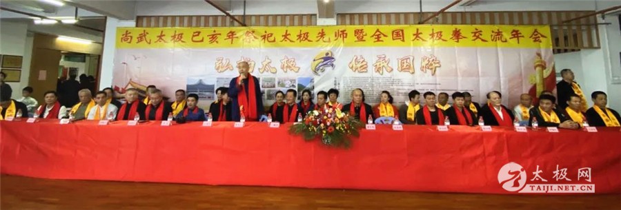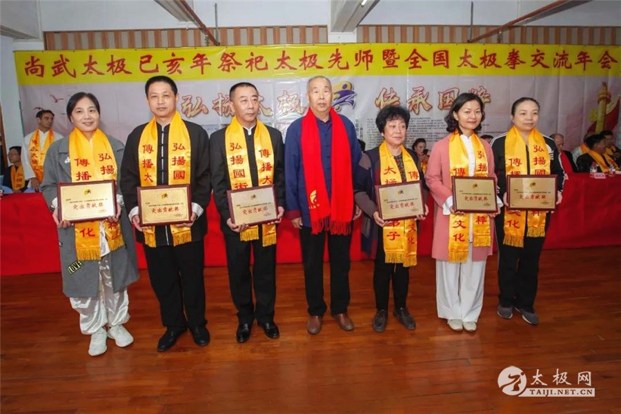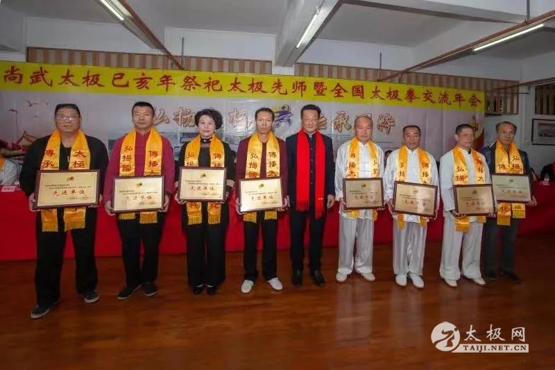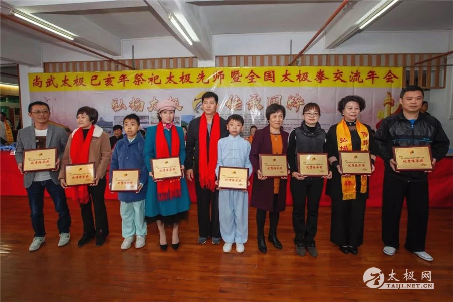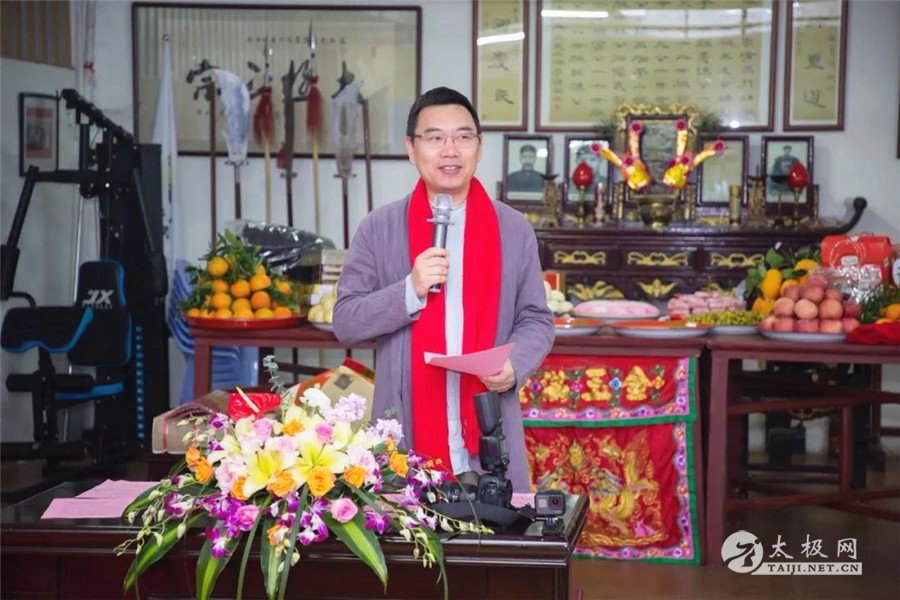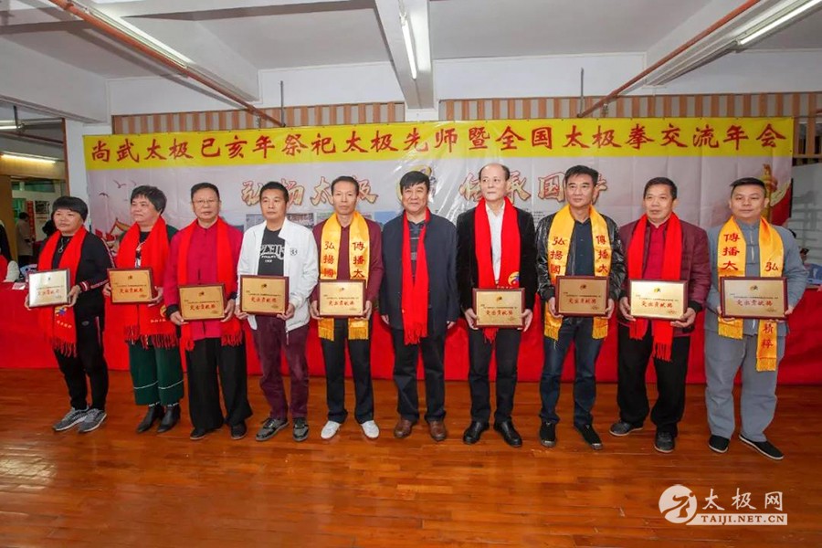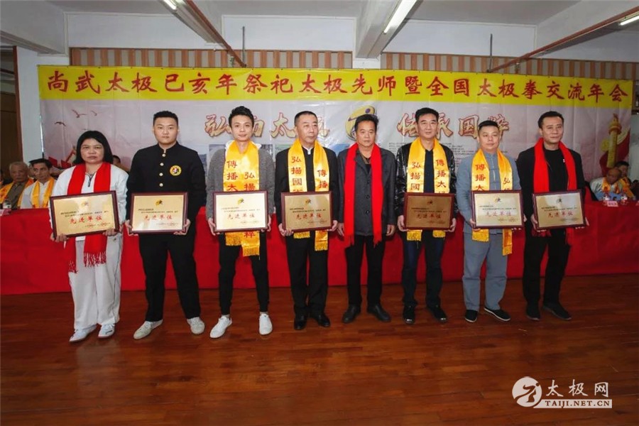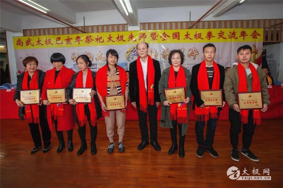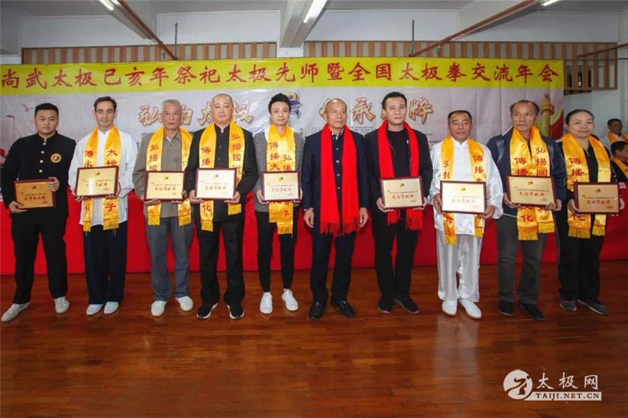 (太极网报道)2019年12月28日,尚武太极己亥年祭祀历代太极先师暨全国太极拳交流年会在广东省汕头市尚武太极拳馆全国总部拉开帷幕。 来自全国各地的尚武太极拳馆分馆、尚武太极拳俱乐部代表近200余人济济一堂,共襄盛举。总结、揭牌、颁奖、交流、表演、祭祖、收徒、文艺演出、团拜会等等一系列活动,把整个太极拳交流年会一次次推向高潮。 上午9时整,伴随着高亢激扬的迎宾进行曲,与会的领导、嘉宾健步走向主席台入座。 与会的领导及嘉宾有: 汕头市武术协会主席纪汉裕 汕头市武术协会秘书长王麟群 汕头市武术协监事长廖如顺 广东省小白龙集团董事长陈振楷 陈鑫后裔 陈氏太极拳第十一代传人陈东山 秦皇岛市人力资源保障局局长 陈鑫太极拳法秦皇岛分会会长王冠月 秦皇岛书协副主席局长 陈鑫太极拳法秦皇岛分会副会长冯克 秦皇岛市社保办主任赵东仁 陈氏太极拳十二代传人、会元堂堂主刘继月 秦皇岛市政府领导赵小秋、李小芹、董静 外国友人陈氏太极拳弟子刘伯斯 山东全民太极拳研究院院长李全民 尚武太极拳馆总部馆长、汕头市武协副主席陈向武 汕头市向银太极拳馆馆长陈向银 汕头市继寅太极拳馆馆长陈继寅 汕头市辛迎彬太极拳馆馆长辛迎彬 以及尚武太极拳馆全国各分馆馆长,尚武太极拳全国各俱乐部主席: 李育州、石德文、侯修友、贡道松、凌双全、陈锐旭、庄东升、周义亮、沈槟、陈璇莹、王贤钦、陈麟、姚淮杰、蔡程豪、吴梅生、陈有岳、章文华、杨金伟、钟华莹、林尤娟、陈楚斌、钟少宣、曾元楷、许钦松、陈楚文等。 大会由汕头电视台著名节目主持人刘群主持。主持人热情洋溢的致欢迎词,并一一介绍莅临的领导嘉宾,会场欢迎掌声经久不息。 大会开始由陈家沟陈氏第二十世、陈氏太极拳第十二代嫡宗传人、国家武术七段、非物质文化遗产(太极拳)代表性传承人,尚武太极拳馆全国总部馆长陈向武致欢迎词,做2019年工作报告和2020年尚武太极的发展规划。同时向在2019年为尚武太极争得荣誉的全国各分馆、各俱乐部表示感谢。(发言稿附后) 汕头市武术协会主席纪汉裕、陈鑫后裔陈氏太极拳第十一代传人陈东山以及陈式太极拳第十三代弟子代表李育州分别发表重要讲话。 为表彰在2019年度为中国传统文化太极拳弘扬传播中做出积极贡献的全国各分馆、俱乐部,以及先进个人,尚武太极拳馆全国总部举行了盛大的表彰和颁奖活动。对他们的辛勤付出表示肯定并加以宣扬。 颁发先进单位、突出贡献奖、优秀传承奖证书: 先进单位 颁奖嘉宾:汕头市武术协会主席纪汉裕 颁奖嘉宾:汕头市武术协会秘书长王麟群 突出贡献奖 颁奖嘉宾:汕头市武术协监事长廖如顺 颁奖嘉宾:陈鑫后裔陈氏太极拳第十一代传人陈东山 颁奖嘉宾:秦皇岛市人力资源保障局局长、陈鑫太极拳法秦皇岛分会会长王冠月 颁奖嘉宾:秦皇岛书协副主席、陈鑫太极拳法秦皇岛分会副会长冯克 颁奖嘉宾:秦皇岛市社保办主任赵东仁 优秀传承奖 颁奖嘉宾:陈氏太极拳十二代传人、会元堂堂主刘继月 颁奖嘉宾蔡友群 颁奖嘉宾:汕头市向银太极拳馆馆长陈向银 颁奖嘉宾 汕头市继寅太极拳馆馆长陈继寅 颁奖嘉宾潮南尚武太极拳馆运营委员会委员长、尚武太极拳馆荣誉馆长周镇桂 颁发新馆任命证书: 尚武太极拳馆总部任命杨慧为“尚武太极拳馆普宁易极禅云分馆”馆长兼总教练 尚武太极拳馆总部任命李瑛为“尚武太极拳馆永康分馆”馆长兼总教练 全国各地报送的优秀展演节目更是精彩纷呈,叫好声、雷鸣般的掌声此起彼伏,经久不息。表演结束,大家都还余意未尽,纷纷在下面交流切磋。 由著名传统礼仪易学专家主持的祭祀历代陈门太极先师活动庄严而隆重,近200余名与会领导嘉宾以及陈门太极弟子、门生,在太极拳创始人陈王廷,以及陈门历代著名太极先师的牌位前肃目敬立,焚香膜拜,以感念历代先贤创太极拳泽世的丰功伟绩。 陈向武老师与众弟子合影 嘉宾与尚武太极拳馆分馆成员合影 陈向武老师收徒仪式 弟子刘伯斯/Tiberius Dinu行拜师礼 弟子李瑛行拜师礼 弟子杨慧行拜师礼 宏大宽敞的宴会厅人头攒动、欢声笑语。来自全国各地的几百名太极拳爱好者,大家济济一堂。大家一起推杯换盏,沟通交流。 最后尚武太极拳馆总部馆长陈向武高举手中酒杯,再一次向所有参会的领导嘉宾以及全国各地的太极拳代表表示衷心感谢,同时向大家发出相聚2020的邀请! 尚武太极己亥年年祭祀历代太极先师暨全国太极拳交流年会在大家依依不舍之中降下帷幕。 陈向武发言稿: 尊敬的各位领导,各位来宾、尚武太极拳馆全国各分馆.各俱乐部代表,太极拳界的老师、拳友们,大家好!首先我代表尚武太极拳馆全国总部对大家莅临参加尚武太极己亥年祭祀太极先师暨全国太极拳交流年会活动表示热烈的欢迎和衷心的感谢。 为了缅怀太极先贤创拳、传拳造福社会的丰功伟绩,弘扬尊师重道的社会美德,使国术精粹得以代代传承,在这里我们怀着感恩之心,发起每年祭祀历代太极先师的活动,以彰显中华文明的传统美德。响应国家提出的文化自信。2019年我们全体尚武人不忘初心、砥砺奋进,在全国各分馆馆长、各俱乐部主席的带领下,全体尚武太极健儿积极努力,崇尚荣誉,奋力进取,在太极拳界的各个领域取得了优异的成绩。席。5月2日,2019年寻找金牌武术师