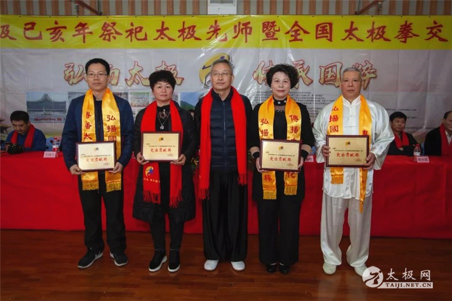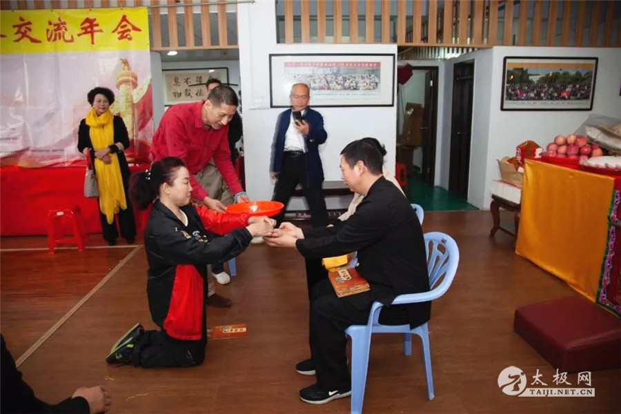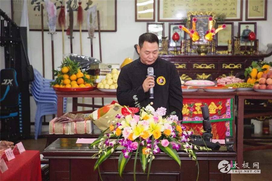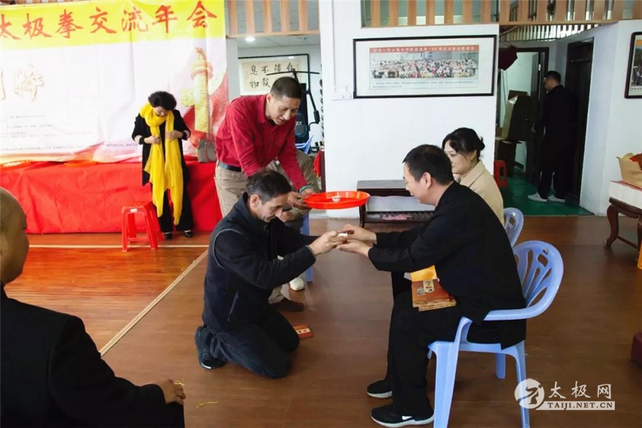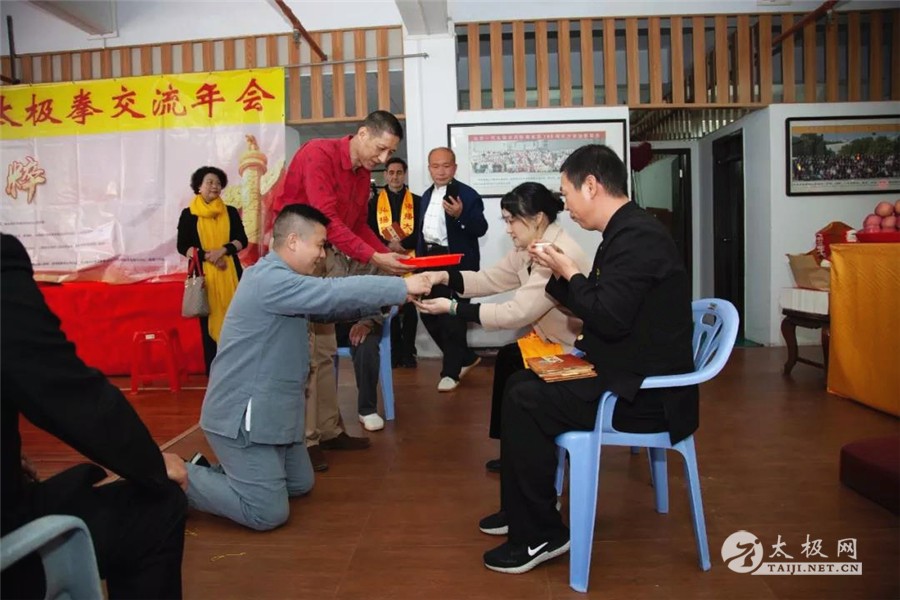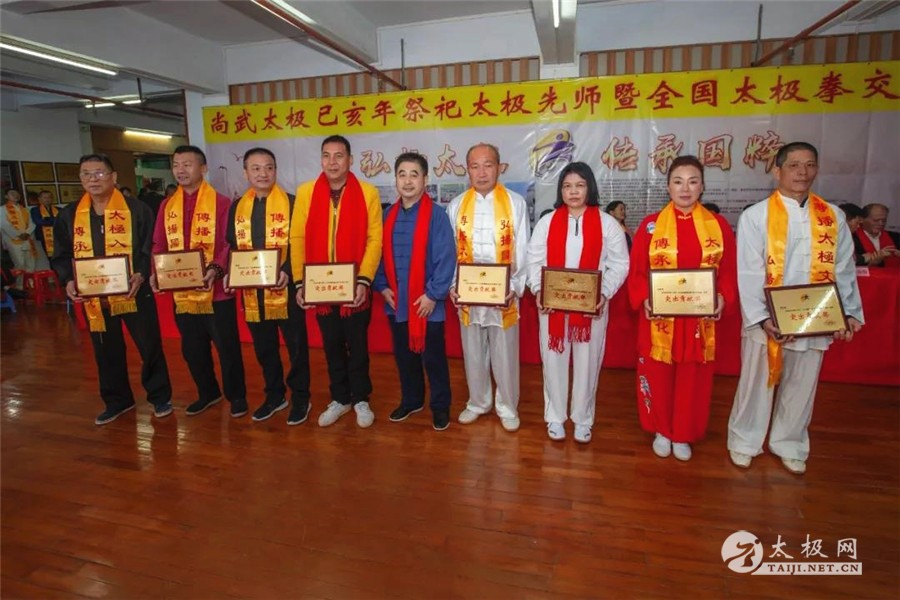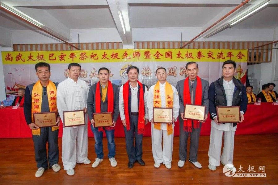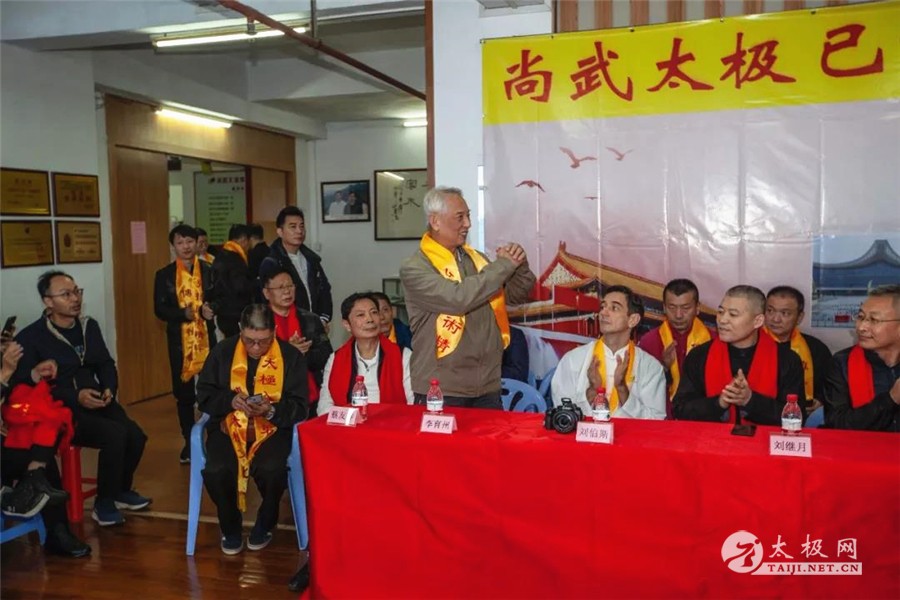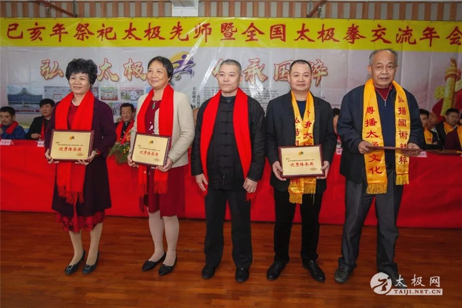 (太极网报道)2019年12月28日,尚武太极己亥年祭祀历代太极先师暨全国太极拳交流年会在广东省汕头市尚武太极拳馆全国总部拉开帷幕。 来自全国各地的尚武太极拳馆分馆、尚武太极拳俱乐部代表近200余人济济一堂,共襄盛举。总结、揭牌、颁奖、交流、表演、祭祖、收徒、文艺演出、团拜会等等一系列活动,把整个太极拳交流年会一次次推向高潮。 上午9时整,伴随着高亢激扬的迎宾进行曲,与会的领导、嘉宾健步走向主席台入座。 与会的领导及嘉宾有: 汕头市武术协会主席纪汉裕 汕头市武术协会秘书长王麟群 汕头市武术协监事长廖如顺 广东省小白龙集团董事长陈振楷 陈鑫后裔 陈氏太极拳第十一代传人陈东山 秦皇岛市人力资源保障局局长 陈鑫太极拳法秦皇岛分会会长王冠月 秦皇岛书协副主席局长 陈鑫太极拳法秦皇岛分会副会长冯克 秦皇岛市社保办主任赵东仁 陈氏太极拳十二代传人、会元堂堂主刘继月 秦皇岛市政府领导赵小秋、李小芹、董静 外国友人陈氏太极拳弟子刘伯斯 山东全民太极拳研究院院长李全民 尚武太极拳馆总部馆长、汕头市武协副主席陈向武 汕头市向银太极拳馆馆长陈向银 汕头市继寅太极拳馆馆长陈继寅 汕头市辛迎彬太极拳馆馆长辛迎彬 以及尚武太极拳馆全国各分馆馆长,尚武太极拳全国各俱乐部主席: 李育州、石德文、侯修友、贡道松、凌双全、陈锐旭、庄东升、周义亮、沈槟、陈璇莹、王贤钦、陈麟、姚淮杰、蔡程豪、吴梅生、陈有岳、章文华、杨金伟、钟华莹、林尤娟、陈楚斌、钟少宣、曾元楷、许钦松、陈楚文等。 大会由汕头电视台著名节目主持人刘群主持。主持人热情洋溢的致欢迎词,并一一介绍莅临的领导嘉宾,会场欢迎掌声经久不息。 大会开始由陈家沟陈氏第二十世、陈氏太极拳第十二代嫡宗传人、国家武术七段、非物质文化遗产(太极拳)代表性传承人,尚武太极拳馆全国总部馆长陈向武致欢迎词,做2019年工作报告和2020年尚武太极的发展规划。同时向在2019年为尚武太极争得荣誉的全国各分馆、各俱乐部表示感谢。(发言稿附后) 汕头市武术协会主席纪汉裕、陈鑫后裔陈氏太极拳第十一代传人陈东山以及陈式太极拳第十三代弟子代表李育州分别发表重要讲话。 为表彰在2019年度为中国传统文化太极拳弘扬传播中做出积极贡献的全国各分馆、俱乐部,以及先进个人,尚武太极拳馆全国总部举行了盛大的表彰和颁奖活动。对他们的辛勤付出表示肯定并加以宣扬。 颁发先进单位、突出贡献奖、优秀传承奖证书: 先进单位 颁奖嘉宾:汕头市武术协会主席纪汉裕 颁奖嘉宾:汕头市武术协会秘书长王麟群 突出贡献奖 颁奖嘉宾:汕头市武术协监事长廖如顺 颁奖嘉宾:陈鑫后裔陈氏太极拳第十一代传人陈东山 颁奖嘉宾:秦皇岛市人力资源保障局局长、陈鑫太极拳法秦皇岛分会会长王冠月 颁奖嘉宾:秦皇岛书协副主席、陈鑫太极拳法秦皇岛分会副会长冯克 颁奖嘉宾:秦皇岛市社保办主任赵东仁 优秀传承奖 颁奖嘉宾:陈氏太极拳十二代传人、会元堂堂主刘继月 颁奖嘉宾蔡友群 颁奖嘉宾:汕头市向银太极拳馆馆长陈向银 颁奖嘉宾 汕头市继寅太极拳馆馆长陈继寅 颁奖嘉宾潮南尚武太极拳馆运营委员会委员长、尚武太极拳馆荣誉馆长周镇桂 颁发新馆任命证书: 尚武太极拳馆总部任命杨慧为“尚武太极拳馆普宁易极禅云分馆”馆长兼总教练 尚武太极拳馆总部任命李瑛为“尚武太极拳馆永康分馆”馆长兼总教练 全国各地报送的优秀展演节目更是精彩纷呈,叫好声、雷鸣般的掌声此起彼伏,经久不息。表演结束,大家都还余意未尽,纷纷在下面交流切磋。 由著名传统礼仪易学专家主持的祭祀历代陈门太极先师活动庄严而隆重,近200余名与会领导嘉宾以及陈门太极弟子、门生,在太极拳创始人陈王廷,以及陈门历代著名太极先师的牌位前肃目敬立,焚香膜拜,以感念历代先贤创太极拳泽世的丰功伟绩。 陈向武老师与众弟子合影 嘉宾与尚武太极拳馆分馆成员合影 陈向武老师收徒仪式 弟子刘伯斯/Tiberius Dinu行拜师礼 弟子李瑛行拜师礼 弟子杨慧行拜师礼 宏大宽敞的宴会厅人头攒动、欢声笑语。来自全国各地的几百名太极拳爱好者,大家济济一堂。大家一起推杯换盏,沟通交流。 最后尚武太极拳馆总部馆长陈向武高举手中酒杯,再一次向所有参会的领导嘉宾以及全国各地的太极拳代表表示衷心感谢,同时向大家发出相聚2020的邀请! 尚武太极己亥年年祭祀历代太极先师暨全国太极拳交流年会在大家依依不舍之中降下帷幕。 陈向武发言稿: 尊敬的各位领导,各位来宾、尚武太极拳馆全国各分馆.各俱乐部代表,太极拳界的老师、拳友们,大家好!首先我代表尚武太极拳馆全国总部对大家莅临参加尚武太极己亥年祭祀太极先师暨全国太极拳交流年会活动表示热烈的欢迎和衷心的感谢。 为了缅怀太极先贤创拳、传拳造福社会的丰功伟绩,弘扬尊师重道的社会美德,使国术精粹得以代代传承,在这里我们怀着感恩之心,发起每年祭祀历代太极先师的活动,以彰显中华文明的传统美德。响应国家提出的文化自信。2019年我们全体尚武人不忘初心、砥砺奋进,在全国各分馆馆长、各俱乐部主席的带领下,全体尚武太极健儿积极努力,崇尚荣誉,奋力进取,在太极拳界的各个领域取得了优异的成绩。席。5月2日,2019年寻找金牌武术师