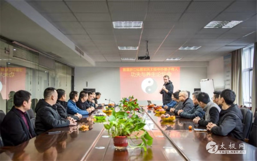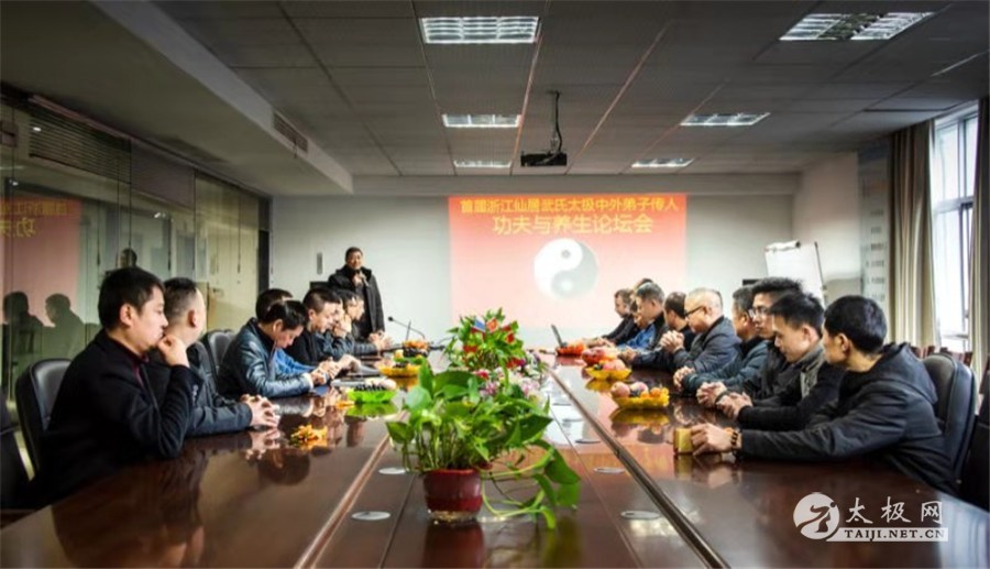 2019年12月22日,首届浙江武氏太极中外弟子传人功夫与养生论坛会在中国仙居西一电气有限公司办公大楼召开。浙江各地武家太极众弟子应者云集,有来自金华以及仙居的所有弟子和慕名而来的八方武术爱好者。更有来自欧洲的瑞士籍孔子学院的博士洋弟子(其专业是研究中国传统武术与国家竞技武术的区别),计划发表论文在《亚洲体育》报刊载录。 首先是武氏太极第五代直系传人,永年武氏太极学院院长孙建国大师讲了武氏太极的传承性和功夫之于养生的重要性。紧接着第六代传人中国西一电气公司董事长总经理施成达先生致欢迎词并表示近期要在公司六楼修建大型太极健身俱乐部,可以为仙居众多弟子传人提供方便条件硬件设施。中国作家协会会员,仙居县文联原主席朱岳峦先生到会祝贺,第六代、七代的众弟子探讨和分享了习练太极的心得体会和养生收获并兴高采烈地回忆起一步步走上习武之路,一幕幕拜师学艺的精彩片段。 他们认为,武氏太极是注重内修,出自文化,化自文化,是文人的太极拳,是需经练身悟道的太极文化。而文化是靠积淀的,文化是久远的,文化是有根的,所以它不张扬,踏实、低调、求真,最后是走圆,符合中庸之道。 武氏太极不仅注重内修为主,同时兼练苦功。以品德为先,修心养性与看家护院为见长,因此历来为书香门弟,古时的名门望族所倚重, 所以亦被世称为“书香太极”。既然内修与文化都是是永恒的,永无止境的,“艺海无涯”!所以论坛会上孙大师强调,武氏太极一脉相承,一直倡导“学规矩,练规矩,合规矩,化规矩,出规矩,出了规矩还是规矩”。终生之功终在进展,一分汗水一份收获,这也是武氏太极拳的魅力所在。 会中孙大师为众弟子讲解了武氏太极的精髓和各层次的习练要点,武家太极拳功夫应该以人体的主体运动推动四肢运行,以丹田与腰椎来发动整体到达四肢梢节最后达到意,气,力,内外六合之竟界。而养生架子是把每动作放松四肢运动无限延长。每个人身体健康状况不同,不能千遍一律的教学,应该因人而异,因材施教。嘱咐弟子们务必为弘扬武氏太极尽心尽力。 会后在浙江西一电气公司与欧洲瑞士弟子共同签字,而后他代表永年武氏太极学院把曾经在欧洲瑞士日内瓦大学孔子学院教学与在欧洲联合国讲学时期,高高挂起的中华人民共和国国旗赠送给西一电气公司,希望在浙江仙居把中华民族优秀传统文化,武氏太极文化更好的发扬广大开花结果起到先锋作用。最后并愉快地与众弟子们合影留念,为第二届武家太极功夫与养生论坛在全国各地传承基地顺利举行打下了良好的基础! |