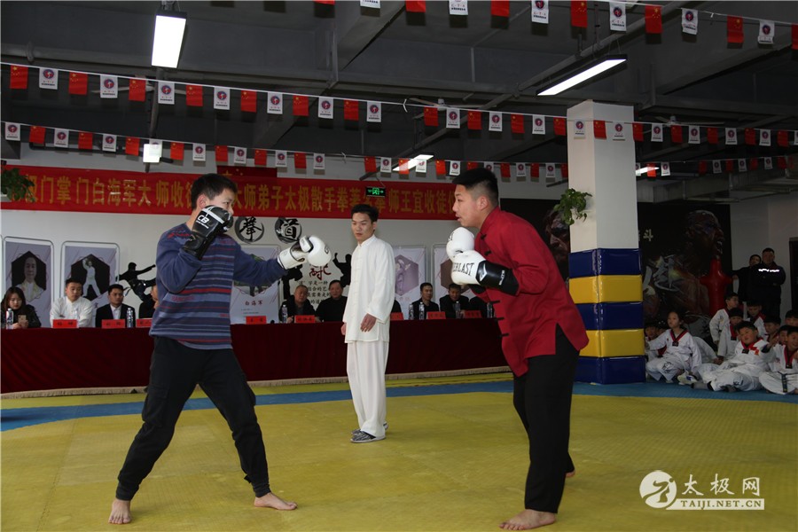 (太极网 讯)太极文化,薪火传承。2020年1月19日下午,太极散手拳掌门白海军收徒和著名拳师王宜收徒仪式于洛阳市宜阳县隆重举行。丁峰、郑毛延有幸拜入太极大师白海军门下,成为太极散手拳第二代传承人。冯文斌、亢琳豪、李佳音、魏若鑫、汪煜桐有幸拜入著名拳师王宜门下,成为太极散手拳第三代传承人。 郑州太极虎跆拳道俱乐部执行总裁、踢王决河南赛区副主任宋长宝,河南省跆拳道运动管理协会常务委员、郑州太极虎跆拳道俱乐部董事长、温县太极门二代大弟子董礼,延津太极虎馆长、郑州太极虎俱乐部副总、温县太极门二代弟子楚广州,太极虎跆拳道总教练、温县太极虎跆拳道馆长、温县太极门二代弟子杨坤,河南太极国际旅行社总经理张惠芳,国家跆拳道示范团河南省分团副团长、世界T3A综合格斗河南分部部长李杼聪,国内知名MMA职业选手苗利涛,中国至正道一联盟常任理事、全国大众跆拳道邀请赛组委会副主席刘琛,洛阳五号馆跆拳道总经理曾凌风,洛阳五号馆跆拳道总监刘丽应邀出席活动,共同见证这庄重的时刻。 太极网创始人、温县太极拳传承人联合会主席刘洪奇应邀并主持一门两代收徒仪式,表示多年来,太极网见证了白海军老师在太极散手拳传承和传播道路上的发展与成就,他向白海军和王宜收徒、弟子们拜入良师表示祝贺,并对他们的武德、拳技、功夫给予充分的肯定,寄望白海军和王宜在太极散手拳传承上再添辉煌。 白海军大师与王宜的收徒仪式同日举行,仪式庄重而古朴,丁峰、郑毛延两名太极散手拳爱好者通过传统拜师仪式拜入白海军大师门下,肩负起太极散手拳传承人的伟大使命。冯文斌、亢琳豪、李佳音、魏若鑫、汪煜桐5名弟子有幸通过传统拜师仪式拜入著名拳师王宜门下,成为太极散手拳第三代传承人,肩负起太极传承人的伟大使命,以告太极传承再续薪火。准弟子郑重宣誓拜师申请、递交拜师帖、向师父敬茶、行拜师礼、师父回帖,为弟子披挂绶带颁发传人证书。李杼聪、宋长宝、刘琛、苗利涛4位见证人在拜师帖上一一签字确认,整个仪式有条不紊,庄重肃穆。 白海军大师向新入门弟子训话,希望他们能够恪守门规祖训,认真习练太极散手拳,用心体悟太极文化,真正肩负起传承太极散手拳,弘扬太极文化的历史使命,为太极散手拳事业的发展不懈努力,为太极散手拳的传播和推广努力奋斗。 王宜发表讲话,对前来参加仪式的嘉宾表示感谢,并希望新入门弟子们能够恪守门规祖训,认真习练太极散手拳,用心体悟太极文化,早日成为太极散手拳传承人,为太极散手拳的传播和推广做出积极的贡献,为太极散手拳事业的蓬勃发展坚持奋斗。 王宜收徒仪式现场 武术表演开始,将现场的氛围推向了高潮。 |