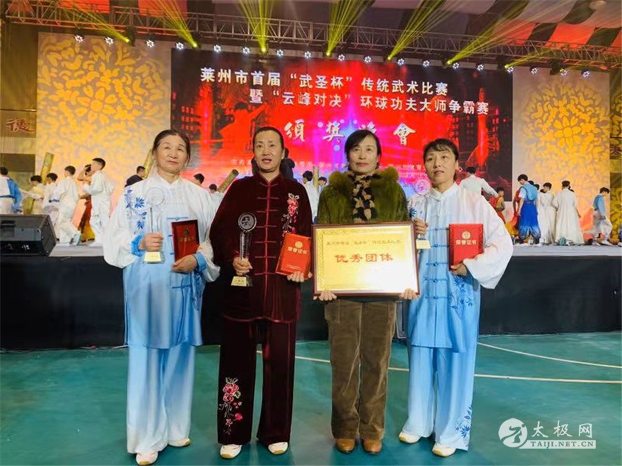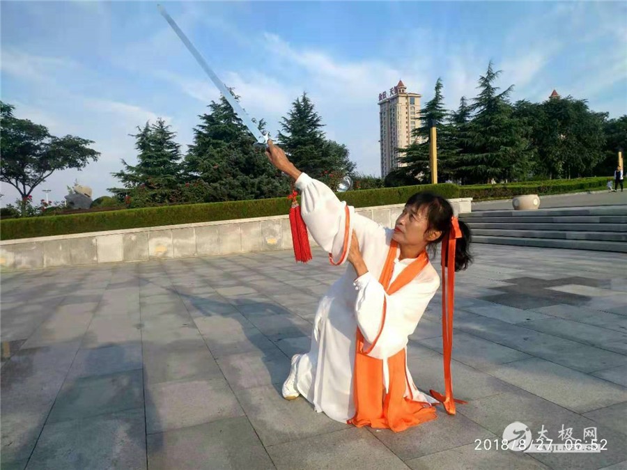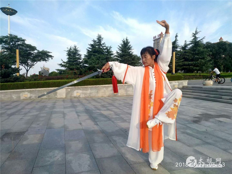 当今的太极文化越发受国人的推崇与热爱,其中也不乏女拳者,她们因本身的特质,反而更能表现中太极拳的柔美,将太极刚柔并济的特点发挥的淋漓尽致,孙秀美就是其中之一。 她从小就对运动颇为热爱,上学时期一直是学校运动员主力,也间接形成她开明、爽朗的性格。与太极拳结缘,还是因为她的丈夫于百琪,师承莱州市武术世家刘国政。也是在丈夫的潜移默化下,孙秀美开始了自己的璀璨武术生涯。 孙秀美演练太极剑 她的武术生涯,从刚起步就做到了废寝忘食的地步,对太极的极度痴迷,甚至惊动了当地的莱州电视台,在对孙秀美的采访中,为她起名为“痴迷太极孙秀美”。一年四季不论三伏酷暑亦或三九寒冬,风雨无阻练拳不止。她的孩子在家庭文化的熏陶下,也深深爱上了太极。年复一年,日复一日,孙秀美的拳艺有了突飞猛进,也逐渐领悟到太极之高深奥秘。随着对太极的深入了解,越发感受太极文化之博大精深。为提高拳艺,一方面,她认真学习太极理论与太极文化,深入了解太极拳渊源。另一方面,持之以恒的习练太极,加强与拳友的沟通交流,及时改正自身的不足。