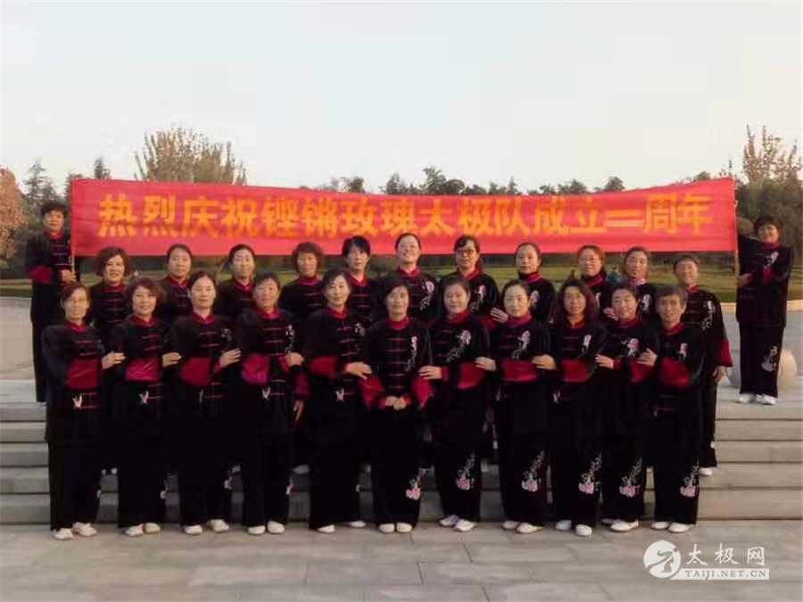 让孙秀美始料未及的是,自己打拳居然能感染到身边人,每当她练拳时,周围都有很多的围观者,其行云流水、舒展大方、刚柔并济的拳姿,都深深吸引着他们,感受到太极拳的魅力所在,都兴致昂然的要跟她学拳,也因为这个契机,为孙秀美成为太极拳传承人奠定了教学基础。 但她的学拳路并不顺利,2007年一场意外让孙秀美患得腰间盘突出症,无法站立行走,只能卧床休养,医生也告诫她,不要练太极拳了,眼看着太极生涯将要告终,但把太极作为一生之爱的孙秀美,难以接受没有太极的生活,即便有疾病缠身,也无法阻挠她练拳的步伐,凭借对太极的依赖与信任,她的身体居然逐渐康复了,连当时的医生都惊叹连连。 孙秀美与铿锵玫瑰太极队 这次经历,让孙秀美更加痴迷太极、热爱生活。在逆境中得到激励,感受颇深。因拳艺的高超,她被聘为莱州市武术协会分会长和教练,后又成立自己的铿锵玫瑰太极队,从最初的太极爱好者,到如今授拳与人的太极名家,孙秀美实现了对太极拳的一生追求。