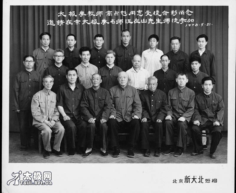 | 汪永泉,号“在山”,生于1904年大年初六,仙逝于1987年12月9日,享年83岁。生前是北京协和医院职工,北京市武术协会副主席。 汪父汪崇禄(溥伦贝子府总管家)是杨健侯的弟子,并经常负责代学代教贝勒爷。汪永泉七岁开始跟随其父向杨健侯、杨少侯父子学习拳艺,因体格魁梧、聪明好学,备受杨家父子青睐,并常为少侯展示拳艺当陪练,从中悟道。1917年,杨健侯指定汪公由杨澄甫指导学习,直至杨澄甫1928年南下为止。在杨家门里有机会向杨健侯父子三人学过太极拳的人或许没有第二人,他真实地继承了杨家太极真功的精华。 汪公练习拳架特点是:舒适、开展、美观、大方;推手发劲乃继承了杨少侯之衣钵,充分发挥出“动中求静,以静制动”的原理,特别体现出了杨式太极拳刚柔相济、以柔克刚的原始内涵,使弹簧力一类的独特功夫达到神奇的境界。 1926年起汪公在“今是中学”教拳,后1934年开始在协和医院进行传授,从学者众多。朱怀元、张孝达等由此跟随汪公终生。1957年在众多学生中有朱怀元、孙德善、张广龄、高占魁、张孝达成为汪公的第一批入室弟子。1977年汪公在中国社会科学院开始重新教拳,院内有许多中老年人一起参加了这项业余活动。1980年,孙德明、齐一、王平凡、孙耕夫、丁冠之、彭诚等成为第二批入室弟子。比较用功的还有魏树仁,青年卢志明也颇受汪公器重。 1990年于汪公仙逝近三周年之际,“杨式太极拳述真”一书作为汪公遗作与世人见面,此书详述了杨式太极拳的精髓,对人们了解杨式太极拳的真谛有很大帮助,可说是一部太极拳经典之作。这是汪公晚年的重大成就和贡献。 汪永泉不愧为杨式太极拳的一代宗师。他生前淡泊名利,安于清苦,献身拳艺,教学严谨,为人忠厚,以身作则抵制拳界搬弄是非之风。他付出全部心血和精力,深入继承杨氏太极拳,艰苦传授六十年,晚年并著书立说、公开内中奥秘,从而形成杨氏太极拳汪传一脉,这是他一生的重大成就,也是对中国武术事业所做出的卓越贡献。 2006年4月,汪脉传人在北京故宫太和殿联合召开《纪念汪永泉老师》大会,会后向北京武协报批成立了《永泉太极拳研究会》,决心为继承汪公遗志、拯救和发扬汪传养生与技击功夫、使杨氏原创太极拳技艺进一步走向世界,谱写出新篇章。
