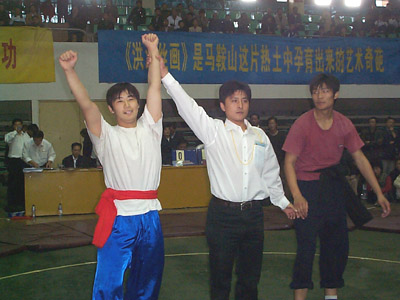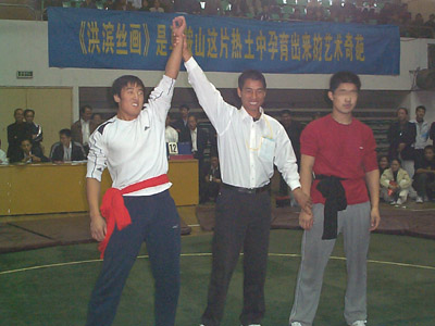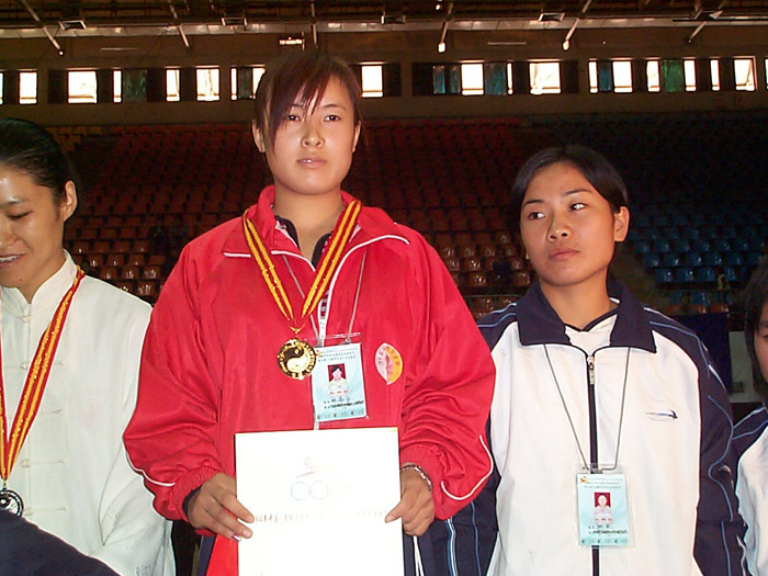31日上午太极推手所有级别进入决赛,来自温县的太极健儿包揽了男女子12个级别的太极推手冠军!女子50kg:陈家沟太极拳学校 陈晶杰 55kg:温县有刚武校 陈小芹55kg以上级:陈家沟太极拳学校 李芳男子48kg: 陈家沟武术院 石冬52kg: 陈家沟武术院 王伟56kg: 温县有刚武校 张光光60kg: 陈家沟太极拳学校 张彦飞65kg: 温县有刚武校 吴景彬70kg: 温县太极拳武校 陈鹏75kg: 温县太极武术馆培训中心 程佳楠80kg: 温县有刚武校 郭明启80kg以上级:温县太极拳武校 刘小胖
