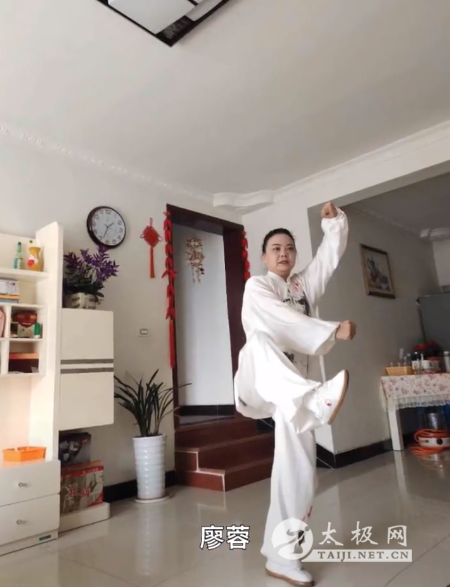 廖蓉参与太极战“疫”——居家健身太极网络公益大赛,表演八法五步。 为积极响应和推广科学健身,助力全民抗疫,太极拳发源地河南温县积极行动,温县文化广电和旅游局、温县陈家沟景区管理局、温县太极拳武术文化管理中心、温县武术协会和太极网(TAIJI.NET.CN)联合发起举办《太极战“疫”——居家健身太极网络公益大赛》。赛事以《居家健身 太极战“疫”》为主题,旨在宣传和倡导居家隔离积极抗疫,宅练太极科学健身。 |