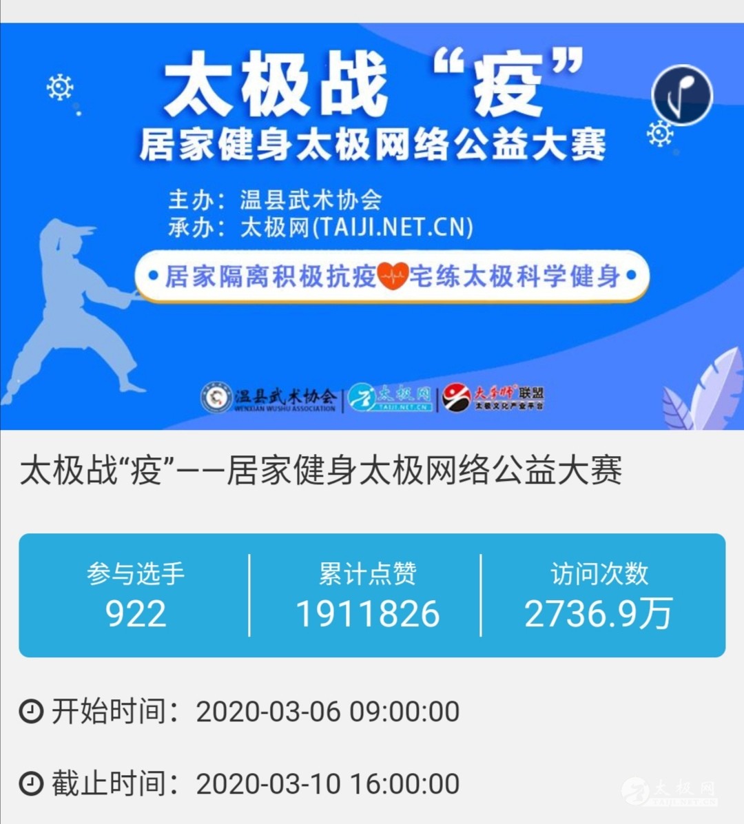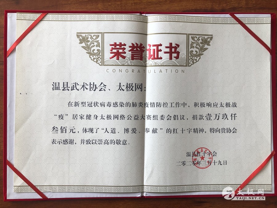 太极战“疫”公益大赛抗疫捐赠仪式 (太极网讯)抗击疫情,太极人在行动!3月20日,一场特别的抗疫捐赠仪式于太极拳发源地温县举行,在温县太极拳武术文化管理中心负责人任海林、温县卫健委副主任郑松林的见证下,温县武术协会副主席张福旺、太极网总编李超代表太极战“疫”——居家健身网络公益大赛组委会向温县红十字会进行了壹拾万伍仟元整的大额捐赠,温县太极拳武术文化管理中心办公室主任刘高杰、温县武术协会秘书长朱志淳出席活动。此次捐赠由太极战“疫”公益大赛全体参赛报名费组成,这份来自全国各地广大太极人的爱心捐赠,是抗疫中太极力量的团结和担当,是全国人民坚决打赢疫情防控阻击战的万众一心、众志成城的缩影体现。 太极战“疫”公益大赛抗疫捐赠仪式 2020年,新型冠状病毒感染的肺炎疫情席卷全国,时至今日已成为全球战“疫”。战“疫”时期,国家积极倡导全民居家隔离防疫和科学健身,太极拳这一享誉世界的完美运动在非常时期发挥的抗疫防护作用受到了官方和国际社会的高度认可,为这场“人类健康战”提供了强有力的能量支持。 2月中旬,一份太极战“疫”的号召和邀约自太极拳发源地始发,星火燎燃般“网”聚全国太极人的拳拳之心。温县文化广电和旅游局、温县陈家沟景区管理局、温县太极拳武术文化管理中心、温县武术协会和太极网(TAIJI.NET.CN)联合发起举办《太极战“疫”——居家健身太极网络公益大赛》,依托“互联网+太极拳”赛事模式,宣传和倡导居家隔离积极抗疫、宅练太极科学健身,活动同时发起爱心捐款倡议,将大赛报名费作为善款进行捐赠,为抗击疫情贡献太极力量。 据悉,本次大赛由选手线上报名、线下录制参赛视频、在线展播及投票、专家评审、颁奖典礼等环节组成。自策划筹备至网络展播成功上线仅半月时间,活动报名远超预期规模,10天时间报名即接近千人,累计收到922部参赛视频作品。3月6日至10日大赛全体同台展播,千万太极人同台交流互动,通过网络传播太极正能量,为抗疫加油,5天展播累计网络访问量高达2700余万次,投票点赞高达191万次,空前团结的太极风潮连续多天刷爆太极人的朋友圈。太极人在战“疫”中用自己的方式积极献出一份力量,以网为媒为战“疫”加油,用太极之光和热温暖战“疫”之路,让我们一起期待战“疫”的最终胜利! 本站责编:张欢 |