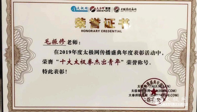 为积极挖掘、表彰、宣传每年度在太极拳传播推广领域表现突出的传承人、拳师,太极网·大拳师联盟发起举办“太极网传播盛典年度表彰活动”。 2019年度获奖名单隆重推出,王建华太极养生馆—郑州分馆馆长毛振修荣膺2019年度十大“太极拳杰出青年”称号。 1975年生于河南淮阳,陈式太极拳第十二代传人,王建华太极养生馆—郑州分馆馆长,王建华入室弟子及得意门生。自幼喜爱并学习少林武术。大学期间曾学习过杨式24式和42式太极拳竞赛套路。2015年在东武太极研修院南环站学习陈式太极拳老架一路、刀、剑。于2017年有缘遇到恩师王建华,并拜在其门下,成为陈式太极拳小架传人,并跟随师父认真系统地学习陈式太极拳小架一路和太极推手。 2018年成立王建华太极拳养生馆郑州分馆,并且在郑州双秀公园和黄科大南校区收徒和教拳,学员人数多达几十人,得到了社区的一致认可,知名度快速传播开来。 本次2019太极网传播盛典年度表彰活动被评选为十大“太极拳杰出青年”,毛振修表示既是崇高荣誉,更是责任担当。在新的一年里更应勇于担当,继续为太极文化传播推广积极奉献。把太极拳的传承发展事业做的更高、更远,唱响新时代太极拳传播发展新篇章。 荣誉经历 2017年4月,参加陈家沟太极拳家乡赛,获陈氏太极拳一等奖、太极单刀三等奖。 2017年11月,参加第三届国际太极拳网络视频大赛,获三等奖。 2017年10月,参加开封第35届菊花文化节第二届“传承杯” 全国武术邀请赛,获太极拳小架二等奖,太极单刀三等奖! 2017年,参加陈家沟太极拳家乡赛,获得陈氏太极拳一等奖、陈氏太极单刀三等奖;参加第二届“传承杯”全国传统武术邀请赛,获陈氏太极拳三等奖、陈氏太极单刀三等奖。 2018年,参加河南省首届陈氏太极拳小架交流大赛,获陈氏太极拳小架二等奖、陈氏太极单刀二等奖 2018年,参加纪念陈鑫诞辰一百七十周年首届陈氏太极拳小架展演交流赛,获陈氏太极拳小架一等奖、陈氏太极单刀一等奖;并被评为优秀传承人。 2018年10月,第四届国际太极拳网络视频大赛,获得铜牌。 2019年,参加武韵中原“体彩杯”河南省第三届传统武术大赛中获陈氏太极拳二等奖;同年,在“搿手杯”第五届国际网络视频大赛中获得一等奖,并荣获2019年度“最美太极人”称号。 本站责编:张欢 |