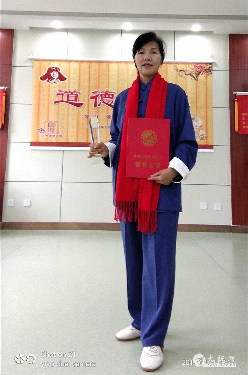 为积极挖掘、表彰、宣传每年度在太极拳传播推广领域表现突出的传承人、拳师,太极网·大拳师联盟发起举办“太极网传播盛典年度表彰活动”。 2019年度获奖名单隆重推出,甘肃省太极拳协会副会长施爱香荣膺2019年度“年度杰出传播奖”。 施爱香,江苏南京人,生于1966年,中国武术六段,国家武术段位指导员、考评员,国家一级社会体育指导员,陈式太极拳第十二代传人,现为甘肃省太极拳协会副会长。 她自习武以来,系统习练国家统编太极拳套路及器械,2012年拜太极拳名家马忠盛老师为师,认真系统规范习练陈氏太极拳36式、陈氏太极拳老架一路、二路炮捶、陈氏传统太极拳小架64式、陈氏太极单剑、陈氏太极单刀、推手及太极内功等。 2010年至今施爱香受聘于兰州石化老年大学、兰州石化新开源等企业担任太极教练。2018年,组建成立了 “甘肃省太极拳协会天源彩虹辅导站”并担任站长兼总教练。她十多年来,培养了一批批优秀弟子,并带领队员多次在国际武术比赛省、市及地区举办武术比赛中获得个人,团体的优异成绩。目前传承弟子8人,学员2000余人,指导员47人,中国武术四段18人。 她曾多次应邀至各事业单位进行太极拳教学,2015年应邀至兰州石化新开源公司机关、惠仁堂、亚太新村小区进行太极拳教学;2016年,应邀至兰炼铁路运输油品储运厂机关、山丹街小区进行太极拳教学;2017年,应邀至新开源、城管二进行太极拳教学;2018年,应邀至综冶三、城管二、推广普及太极(八法五步)临洮街晨练点、西固金城公园天源彩虹辅导站站点进行太拳教学;2019年应邀综冶十一、综冶二、保洁公司、综冶六进行太极拳教学;2019年受聘为甘肃省太极拳协会首届网络视频大赛专家评委;2019年6月担任甘肃省太极拳协会邓园文化周太极拳联宜赛裁判员。 施爱香老师在采访的最后表示:荣获2019年太极网“年度杰出传播奖”既是荣誉更是责任担当。中华武术源远流长,太极拳是文化内涵极其丰富的拳种,它不仅仅是技艺的传承,更是一种崇武尚德的武道传承。今后将继续致力于研究、继承、弘扬太极文化,普及、推广太极运动,传承中华国粹,服务社会健康发展。 荣誉经历 2008至2011年,获个人健身气功(六字诀、八段锦)二等奖、太极拳金奖、太极剑银奖。 2012年,参加国际武术交流大会暨武术文化产业高峰论坛“兰洋杯”荣获陈式太极拳56式金奖。 2015年,参加甘肃省传统武术锦标赛荣获陈氏太极拳自选及陈氏太极剑双银奖;参加第八届中国.焦作国际太极拳交流大赛荣获陈氏太极拳自选及陈氏太极单剑双金奖;参加甘肃省太极拳公开赛荣获陈氏太极拳自选及陈氏太极单剑双银奖;参加甘肃.兰州第九届健身气功交流大赛团体(八段锦)二等奖、个人荣获(易筋经)银奖。 2016年,参加甘肃.兰州太极拳精英交流大赛荣获陈氏太极拳自选及陈氏太极剑双银奖。 2017年,参加甘肃.兰州第八届运动会获陈氏太极自选第六名;参加甘肃·兰州第十一届健身气功交流大赛获团体二等奖,个人(大舞)第二名。 2018年,参加中华魂西固迎新春武术比赛荣获集体项目杨式太极拳24式并立第一名;荣获个人陈氏传统太极拳小架自选第一名。参加甘肃·兰州第十二届健身气功交流大赛荣获团体(导引养生十二功法)第一名、个人(太极养生养生杖第二名;同年9月参加甘肃·兰州首届社会体育指导技能大赛荣获陈氏太极拳自选第三名;同年10月参加河南·开封首届太极拳小架交流大赛荣获陈氏传统太极拳小架自选银奖、陈氏太极剑金奖;同年12月参加甘肃·兰州首届市民运动会荣获团体第一名、个人陈氏传统太极拳小架自选及陈氏太极剑双金奖。 2019年参加甘肃省首届太极拳网络视频大赛荣获陈氏太极拳及陈氏太极剑双金奖;参加首届“大拳师杯”太极(八法五步)视频大赛荣获集体项目二等奖、个人一等奖。 本站责编:张欢 |