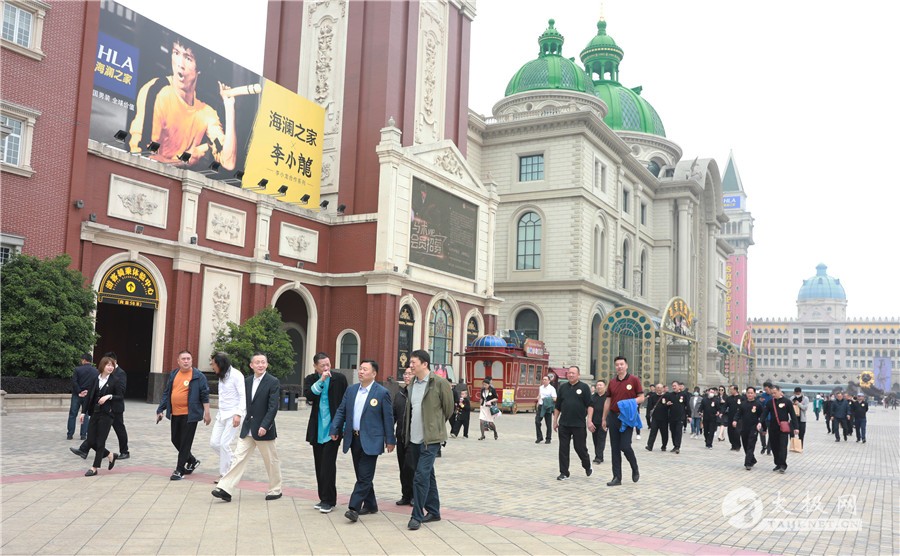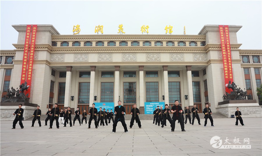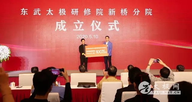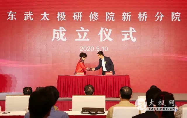 视频:东武太极研修院与海澜之家联谊活动 2020年5月10日,江苏海澜飞马水城俨然已是中国最具特色的太极小镇,太极文化元素和宣传渲染全城。彩旗飘飘,印有东武太极LOGO的旗帜飒爽飘扬,“传承国粹·研习太极·分享健康·修炼身心”的醒目标语遍布水城内外。在新桥镇,当代太极拳名家张东武、徐勤兰以及青年太极名家张宇浩的巨幅海报随处可见,“夸张”而耀眼,体现着海澜集团追星太极拳做大文旅产业的坦诚与直白。一切超高规格的活动布置和准备只为东武太极研修院新桥分院挂牌成立暨创建体旅融合示范基地这一太极爆款项目铺垫和前奏。