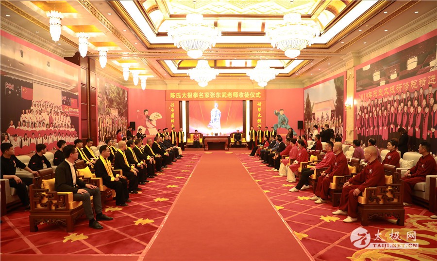此次推广太极文化进无锡,是江苏省首次以太极文化、武术体育为核心,开展的全省示范型体旅融合系列活动。在这具有非凡意义的一天里,一场高规格的传统拜师仪式低调举行,仪式遵循传统,典雅大气、简洁庄重,海澜集团高层代表团与东武太极研修院代表团罗志钢、田兆民、康渌、杨峰、张晓力以及太极网总编李超等参与见证,东武太极研修院新桥分院院长朱正洁正式拜入张东武老师门下,成为东武太极大家庭中的一份子,为东武太极在海澜集团及新桥镇的全面推广与普及夯实基础。周建平董事长和弟子代表邓林林为仪式分别致辞,张宇浩代表宣读入门誓词,河南电视台常魁主持仪式。