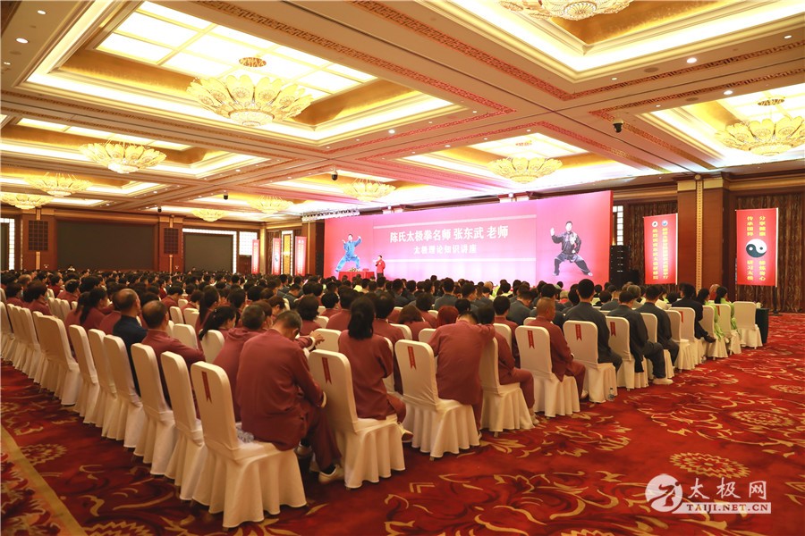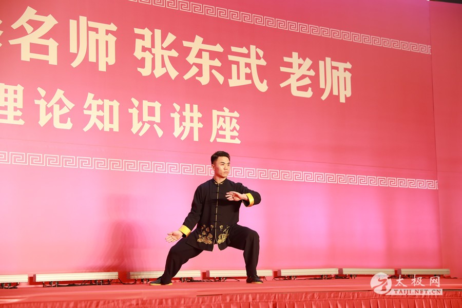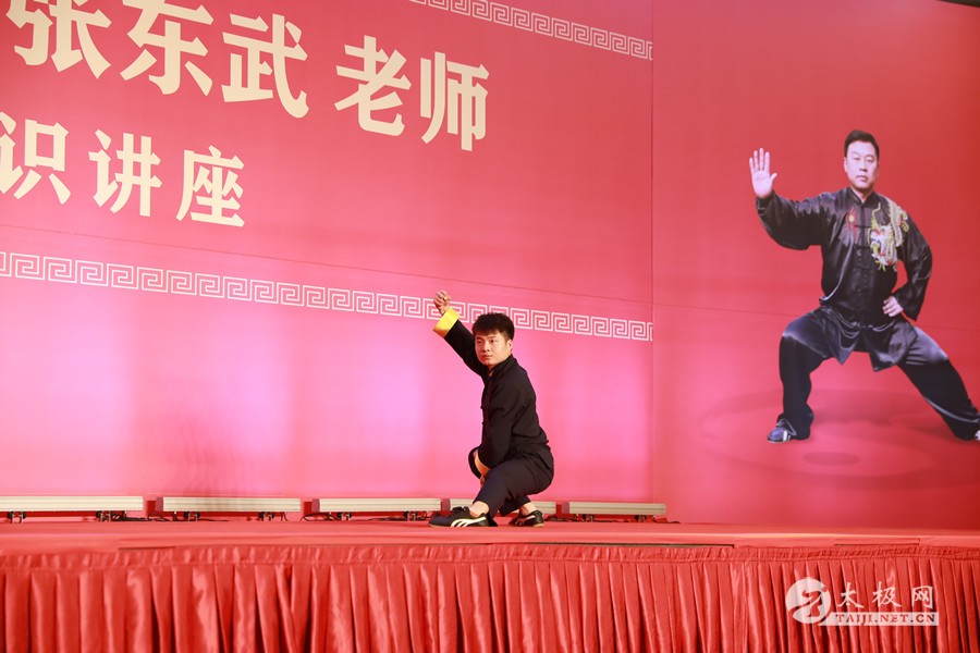 系列活动当天,受海澜集团邀请,张东武老师为新桥镇太极拳爱好者以及海澜集团员工八百余人献上了一场精彩绝伦的太极讲座,现场人气爆棚,仿若大型太极追星会。张东武老师从太极拳的基本要领,手法、身法到步法进行了深入浅出的讲解,就基本功站桩的一些方法和注意事项现场传经,并向大家展示了太极拳招式的一些技击用法,周建平董事长与全体与会拳友已然是张东武老师的超级铁粉,现场学起了站桩,气氛热烈和谐。东武太极教练团崔成龙、常跃辉的精彩太极展演更是让观众大饱眼福,享誉拳界的“东武太极小熊”、张东武弟子熊振宇航(8岁)的现场表演大气沉稳、灵动生机,让观众震撼不已,太极文化的魅力在海澜集团总部大舞台上熠熠生辉。