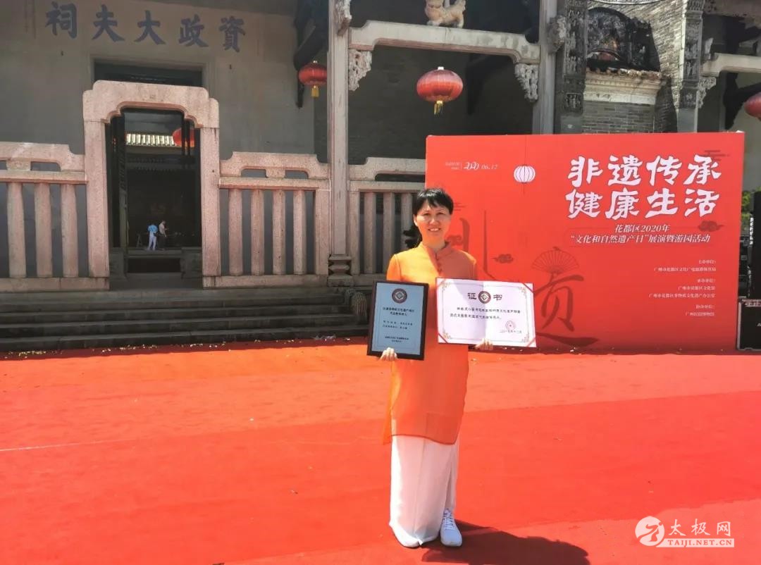 2020年6月12日,“非遗传承,健康生活”,由广州市花都区文化广电旅游体育局主办的,2020年“文化和自然遗产日”展演暨游园活动,在广州民俗博物馆举办。 武小敏老师被授予“第四批广州市花都区非物质文化遗产项目代表性传承人”称号,在“文化与自然遗产日”活动中,花都区文化广电旅游体育局领导,为6名获得第四批区级非物质文化遗产项目代表性传承人颁发荣誉证书和牌匾,武小敏老师现场接受新闻媒体采访,并为游客展示和教授陈氏太极拳。 武小敏,太极拳发源地陈家沟人,第四批广州市花都区非物质文化遗产项目代表性传承人、中国武术六段、国家武术段位考评员和指导员、国家一级社会体育指导员、一级拳师、焦作市优秀太极之家、陈家沟太极拳研究会副会长、广州市花都区武术协会副主席、广州市花都区太极拳协会副会长、陈志强太极拳推广中心馆长。 40余次获得世界太极拳健康大会、全国传统武术比赛、全国太极拳公开赛、香港国际武术节等大赛太极拳、器械一等奖和第一名。 武小敏的太极之家 2007年 10月,在陈家沟举办的全国太极拳邀请赛获陈氏太极拳金牌(第一名)、陈氏太极剑金牌(第一名)。 2008年3月,培训广州市花都区第三届老年人运动会100多名参赛运动员24式太极拳。 2008年4月,广州市花都区第三届老年人运动会太极拳比赛担任裁判员工作。 2008年8月,由广东省体育局在广州市第二文化宫体育馆举办的“广东省传统武术项目锦标赛”获得传统太极拳一等奖、传统太极短器械一等奖、陈氏太极拳竞赛套路一等奖。 2008年3月培训花都区老年人运动会100多名参赛运动员24式太极拳 2008年带学生参加广东省传统武术锦标赛获得26枚金牌、67枚银牌 2008年培训花都区法院100多名法官干警太极拳 2008年10月,陈家沟全国太极拳邀请赛获陈氏太极拳金牌、陈氏太极剑金牌。 2009年3月,温县体育局授予“优秀教练员”称号。 2009年8月,由广东省体育局在广州体育学院体育馆举办的“广东省传统武术项目锦标赛”获得传统太极拳一等奖、传统太极短器械一等奖、陈氏太极拳竞赛套路一等奖、24式太极拳一等奖。 2010年7月,由广东省体育局在广州体育学院体育馆举办的“广东省传统武术项目锦标赛”获得传统太极拳一等奖、太极拳规定套路陈氏一等奖、太极拳规定套路16式一等奖。 2010年12月,广州市花都区第六届运动会太极拳比赛担任裁判员工作。 2011年1月,被广东省体育局授予“国家一级社会体育指导员”称号。 2011年3月,“武德杯”第九届香港国际武术节获得陈氏太极拳传统类第一名。 2011年8月,由广东省体育局在广州体育学院体育馆举办的“广东省传统武术项目锦标赛”获得传统太极拳一等奖、规定陈氏太极拳一等奖、传统太极短器械一等奖。 2011年11月,被授予“河南省一级拳师”称号。 2012年8月,由广东省体育局在广州体育学院体育馆举办的“广东省传统武术项目锦标赛”获得传统太极拳一等奖、传统太极短器械一等奖。 2013年8月,被焦作市体育局和焦作市妇女联合会授予:焦作市“优秀太极之家”荣誉称号。 2014年10月,广州市花都区第七届运动会太极拳械比赛中获得太极拳第一名、太极器械第一名。 2014年11月,被中国武术协会授予“武术六段”称号。 2015年9月,当选广州市花都区武术协会副主席。 2015年10月,由中国武术协会在河南温县举办的“全国武术太极拳公开赛”武小敏获得陈氏太极拳一等奖(第一名)、陈氏太极剑一等奖。 2016年2月,温县体育局授予“先进工作者”称号。 2016年5月,被中国武术协会授予“中国武术段位制考评员、指导员”称号。 2016年5月,广东省陈氏太极拳精英赛中授予“优秀裁判员”称号。 2016年7月,广东省武术协会在海珠区全民健身活动中心举办的“广东省第九届武术精英大赛暨《中国武术段位制》中段位技术考评”获得陈氏太极拳金奖、陈氏太极剑金奖。 2016年8月,中国武术协会在佛山岭南明珠体育馆举办的“世界太极拳健康大会”武小敏获陈氏太极拳一等奖、陈氏太极剑一等奖。 2016年8月,广州市花都区武术精英赛担任裁判员工作。 2016年10月,广东省武术协会在花都举办的中国武术中段位晋级考试担任考评员工作。 2017年7月,广东省第十届武术精英大赛获得陈氏太极拳金牌、陈氏太极剑金牌。 2017年8月,广东省武术协会在花都举办的中国武术中段位晋级考试担任考评员工作。 2017年10月,广州市花都区青少年传统武术锦标赛担任裁判员工作。 2017年11月,中国武术协会在佛山岭南明珠体育馆举办的“全国传统武术比赛”获得陈氏太极拳一等奖、陈氏太极剑一等奖。 2018年8月,广东省武术协会在广州举办的中国武术中段位技术考评中担任考评员工作。 2018年9月8日,广州市花都区太极拳协会成立,当选副会长。 2018年10月13日,带领40多名学员参加国家体育总局登山运动管理中心、中国登山运动协会、湖南省体育局、湖南省旅游局主办的,中国户外健身休闲大会(东江湖站)暨“雾漫小东江”国际半程马拉松赛,分别在开幕式和狂欢晚会上表演陈氏太极拳械。 2018年10月18日,带领60多名学生参加在花都体育馆举办的广州市花都区第八届运动会暨第四届残疾人运动会开幕式群狮太极《刚柔和风》大型表演。 2019年2月,温县武术工作会议在县政府会议室召开 ,被评为“先进个人”,陈志强太极拳推