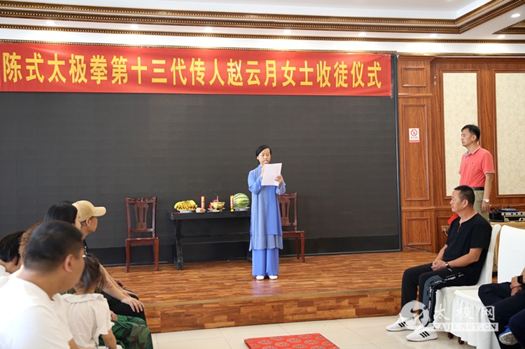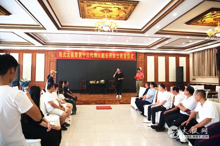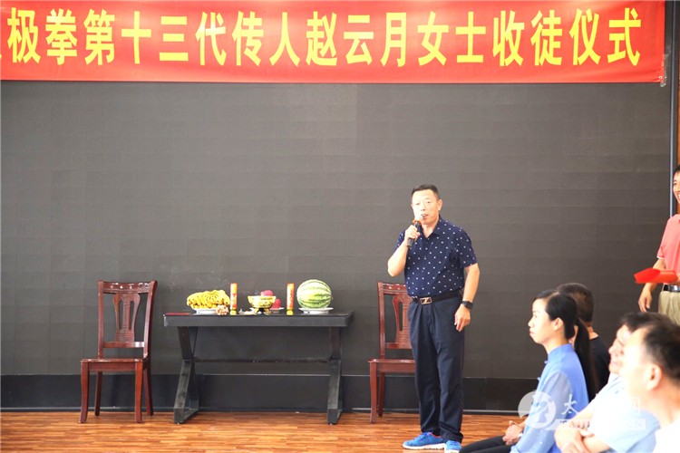 (太极网报道)6月20日上午,在石家庄市藁城区渔人码头宴会厅,马虹之系陈式太极拳十三代传人赵云月女士收徒仪式在这里举行。赵云月女士的师父,陈式太极拳十二代传人、马虹大师的高足刘建辉先生,陈式太极拳十三代传人魏清河先生、刘永华先生以及准弟子王泽琪的亲属等人参加了此次拜师收徒仪式,共同见证了这一难忘时刻。 刘建辉先生带弟子赵云月女士祭拜马虹大师 刘建辉先生对今天的收徒仪式给予了充分的肯定和殷切的希望。告诫大家要牢记学拳的初心,忠诚地继承、热忱地传播,强健自己体魄的同时,把我们这一中华民族文化的瑰宝传统陈式太极拳发扬光大。 太极传承,尊道贵德。其继承和发展历来都是师徒相传。传承同时不忘感谢师恩,赵云月女士感谢师父恩准开门收徒。 赵云月女士在收徒仪式上的讲话情真意切,师父言传身教的影响根植于心,深知作为传承人肩上的重任。同时也告诫准弟子王泽琪要刻苦习练陈式太极拳,多做对社会有意义的事情。 准弟子王泽琪宣誓 师徒二人在仪式上演练陈式太极拳 陈式太极拳十三代传人魏清河先生作为见证人代表在收徒仪式上发表讲话,祝贺陈氏太极拳大家庭又添新力量。 “路漫漫其修远兮。吾将上下而求索”,发展太极事业是大家共同的心声。最后收徒仪式在庄重、祥和的氛围中落下帷幕。 本站编辑:太极网安安 |