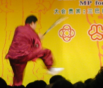 “当晚有大约20位从新加坡, 马来西亚与中国的老师在这次的交流会表演。 所表演的套路包括陈,杨,孙,八卦。 兵器项目有刀,剑,春秋大刀,长杆。
