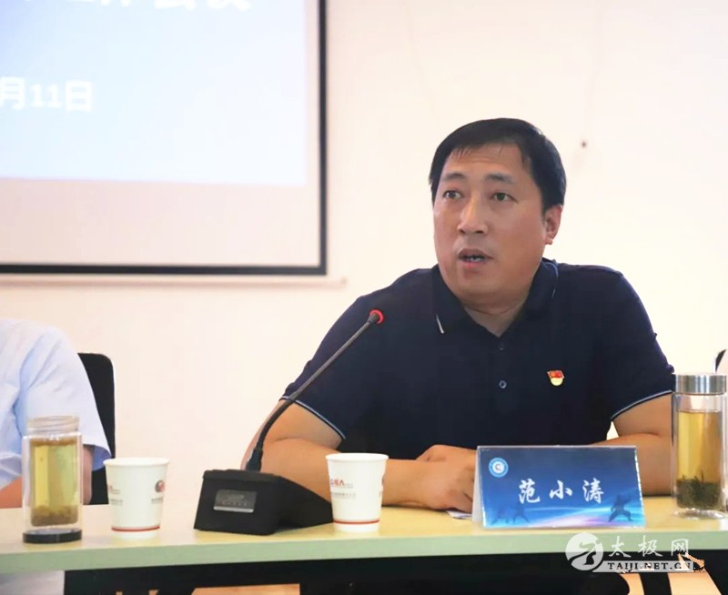 2020年7月11日下午,温县武术协会成立一周年座谈会在温县太极拳武术文化管理中心三楼会议室召开。出席座谈会的有武协主席、副主席、秘书长、副秘书长、常务理事、理事等40余人,还特别邀请了温县太极拳武术文化管理中心负责人任海林,温县太极拳武术文化管理中心副主任、武术协会监委会主任范小涛出席该会议。 会议由武协主席张胜利主持。 武协主席张胜利 首先,武协主席张胜利和大家一起简要回顾了武协成立一年来的工作,从武协的自身建设、武术交流、武术人才培训、疫情期间的居家健身太极网络公益大赛和武协人的战疫爱心活动、武协会员的吸收和管理、人事变动、财务情况等方面进行了总结。 武协副秘书长陈皂罗 随后,武协副秘书长陈皂罗、王向忠分别向大家汇报了“温县易德太极文创公司”和“温县启程体育文化发展责任有限公司”的运营和筹建情况。 武协副秘书长王向忠 “温县易德太极文创公司”向大家展示了现有的文创产品。 之后,大家也围绕“两个公司”的实际情况展开了重点讨论。大家一致表示对两个公司的创立表示支持和赞同,并希望武协人树立家乡情怀、加强团结、同心协力、攻坚克难,把两个公司做大做强。 参会人员 县武管中心副主任、武协监委会主任范小涛 温县太极拳武术文化管理中心副主任、武协监委会主任范小涛就武协一年的工作进行了评价,同时给予了肯定,也希望武协以后的工作更加规范更加精彩! 县武管中心负责人任海林 最后,温县太极拳武术文化管理中心主任任海林做了重要讲话,希望温县武术协会全体成员不忘初心,牢记使命,砥砺前行,紧扣新时代发展脉搏,着眼于改善和提高人们健康生活水平,为推进健康中国战略和传承中华优秀文化而不懈努力! 本站编辑:太极网安安 |