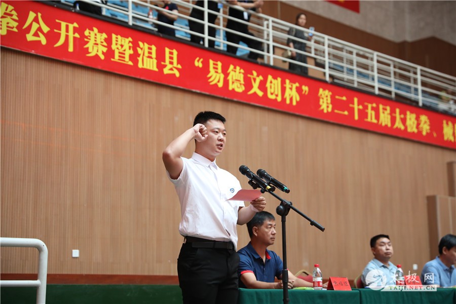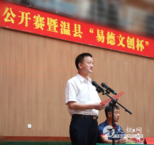 (太极网报道)为持续叫响“太极拳发源地”文化品牌, 践行“崇文尚武、创新创造、时不我待、追求卓越”的新时代温县精神,增加太极拳习练者之间交流,提高太极拳经济水平,持续向外输送高水平武术人才,夯实发源地人才队伍基础。7月18日,陈家沟第二届“王廷杯”太极拳公开赛暨温县“易德文创杯”第二十五届太极拳、械锦标赛在陈家沟国际太极拳交流中心开幕。来自全国各地500余名运动员在太极拳发源地的舞台上同台竞技,争金夺银。 本次大赛由温县人民政府主办,温县文化广电和旅游局、温县太极拳武术文化管理中心、温县武术协会承办,温县陈家沟景区管理局、温县易德太极文创有限责任公司、温县启程体育文化有限责任公司协办。陈家沟“ 王廷杯”系列赛事是温县重点打造的高水平、高规格武术赛事,也是温县将太极拳推向世界各地传播的重要平台。 出席开幕式的领导和嘉宾有:温县人民政府副县长李美玲,温县文化广电和旅游局局长王海昌,温县卫生健康委员会主任闫全心,温县城管局党委书记樊国静,温县赵堡镇镇长刘虎臣,温县赵堡镇党委副书记、景区管理局局长刘中原,温县文化广电和旅游局副局长、温县太极拳武术文化管理中心负责人任海林,温县武术协会名誉副主席、陈家沟村党支部书记、村委会主任陈景元,本次大赛仲裁委员会主任张福旺,总裁判长辛强。 温县太极拳武术文化管理中心负责人任海林主持开幕式 温县人民政府副县长李美玲宣布大赛开幕,温县文化广电和旅游局副局长、温县太极拳武术文化管理中心负责人任海林主持开幕式。 温县文化和广电旅游局局长王海昌发表致辞 温县文化和广电旅游局局长王海昌发表致辞,首先对参加本次仪式的嘉宾和运动员表示欢迎,强调此次比赛就是为了持续叫响“太极拳发源地”文化品牌,进一步传承和弘扬太极拳文化,这不仅是一次以拳会友、切磋交流的赛事,也是一个推广太极国粹的平台。 他在致辞中提到,本次赛事还有一个特色,就是按照省政府提出的“两拳融合”战略,将少林拳作为展示项目融入本次赛事进行尝试。如果可行,还会将少林拳列为正式比赛项目。同时也希望各馆校将少林拳,特别是武术基本功要纳入平时的训练中,积极推动这项工作。希望各代表队本着发扬“友谊第一,比赛第二”和“重在参与、重在学习、重在提高”的原则,赛出水平、赛出风格、赛出友谊! |