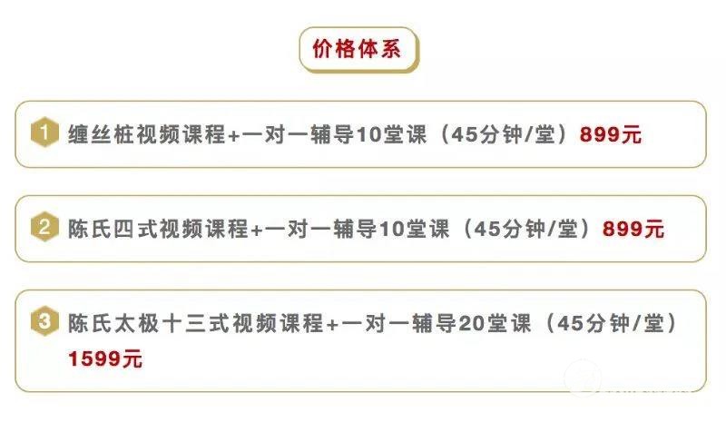 吴老师太极教学实拍图 六、现在下单 赠送《站桩》课程 1.课程这么好,怎么收费的呢? “明师+助教一对一”课程价格系列,所有课程一旦购买,即可重复收看。  2.为什么要选择“明师+助教一对一” 俗话说“师父引进门,修行靠个人”。师父是“明理,明法”的智慧明灯,但实际修习却难以独自坚持。领悟师父的拳法的妙义可不是一朝一夕的事,唯有如理如法地勤加练习实践,才是弟子学有所成的唯一保障。这条路上跟随师父研习多年的助教成为弟子们一路习拳,亦师亦友的最佳道友。