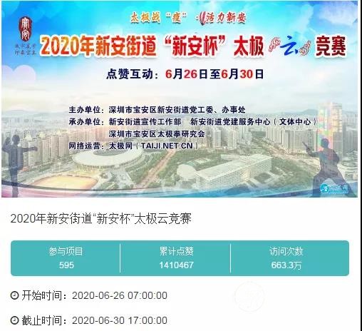 为积极响应发展全民健身、建设健康中国的号召,同时倡导市民积极参与体育锻炼,强身健体、活跃身心,充分展示新安街道文化体育运动的蓬勃发展,由深圳市宝安区新安街道党工委、办事处主办的2020年新安街道“新安杯”太极云大赛于2020年6月至7月隆重举行。 此次云大赛包括太极云竞赛与太极云培训两部分,由深圳市宝安区新安街道宣传工作部、深圳市宝安区新安街道党建服务中心(文体中心)和深圳市宝安区太极拳研究会承办,依托“互联网+太极拳”传播手段,创新传统武术传播模式,在线为所有太极拳爱好者搭建一个共享、开放的交流与学习平台。 一、太极云竞赛 太极云竞赛从6月1日开始接收参赛视频起至6月20日报名截止,共收到来自广东、北京、上海、黑龙江、山西、陕西、河南、湖南、浙江、江西、四川、贵州、云南、海南等地的500余名太极拳爱好者选送的参赛视频595个,于6月26日至6月30日在全网持续高能燃烧展播,累计网络访问量达663.3万次,投票点赞141万次,广大太极拳爱好者互动留言频繁连刷,燃爆太极人的朋友圈! 在最后的太极云竞赛评审环节,经过5名专业裁判和5名太极拳明师名家组成的评审团,对全部参赛作品进行了为期10天的公平公正、专业准确的评分,顺利评选出各等奖及名次奖等全部奖项。 二、太极云培训 在强手如云、竞争激烈的太极云竞赛顺利进行的同时,太极云培训也于6月9日至6月28日如火如荼地同步举行。此次云培训特邀培训导师中国武术七段、杨式太极拳第五代传人宋斌先生及助教高柔婧老师,给广大太极拳爱好者系统介绍和分享了传统杨式太极拳的桩功、基本功法、基本套路以及灵活多变的练习方法等。 历时十七天的太极云培训,太极网、漾太极两大平台的日点击量均过万次,全网累计播放量超过48万次,全国各地的拳友在线同步学习,共同掀起全民健身运动的小热潮。 通过举办此次新安街道“新安杯”太极云大赛,不仅充分彰显了新安街道文化体育运动的蓬勃发展,同时通过以赛代练、以赛促练,为全民健身起到了积极的引领作用。 文章来源:深圳市宝安区太极拳研究会 本站责编:陈陈 |