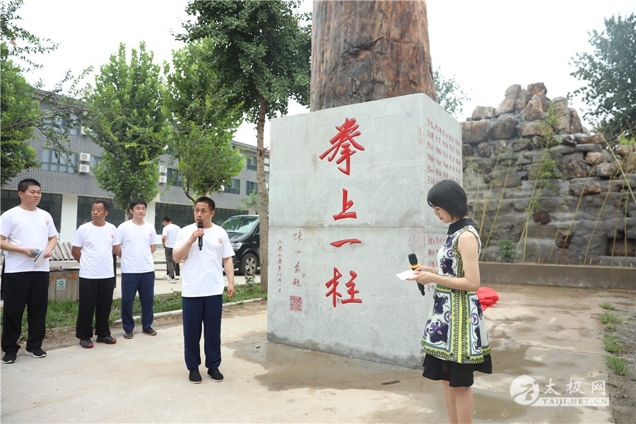 (太极网讯)8月5日,太极拳发源地温县陈家沟太极拳学校内人潮涌动,一场太极拳盛事在此隆重举行,“拳上一柱”揭幕仪式于上午11时11分成功启动,陈家沟太极拳学校总教练陈自强,厦门集美大学教师陈恩,陈家沟陈氏太极拳协会副会长、上海浦东分会会长尚德望老师以及来自各地的陈家沟陈氏太极拳协会分会长参加了此次揭幕仪式。 “拳上一柱”是由陈家沟太极拳总教练陈自强老师组织建立,“拳上一柱”由上边的木柱和下边的基石两部分组成,上半部分的木柱是由陈家沟陈氏太极拳协会副会长、上海浦东分会会长尚德望老师捐赠,下半部分的基石是由陈小星师傅的义子、厦门集美大学教师陈恩老师带领众师兄弟共同捐赠,并由陈自强老师撰文,颜伟老师抄写,陈自强老师的徒弟刘洪甫刻制。 本次揭幕仪式由陈氏太极拳第十二代传人、世界太极拳联谊会副秘书长张宗军和中央电视台农业频道主持人吴双女士联袂主持。 尚德望介绍捐赠情况 在揭幕仪式上陈家沟太极拳学校总教练陈自强,厦门集美大学教师陈恩,陈家沟陈氏太极拳协会副会长、上海浦东分会会长尚德望老师分别致辞。 尚德望说此神木源自一段难忘的经历,他曾用中医拯救了所罗门群岛的孩子,族长为了报恩带领全村人找到了原始森林里最古老的神木,全村虔诚地祭祀了7天,将神木赠送给了尚德望老师,然而本就需要木头的他并没有免费接受如此珍贵的神木,而是通过正常的购买流程买下了神木,经历了重重困难才运到国内,来到我们的身边,它的珍贵程度自然不言而喻,将此神木捐赠给母校是为了感谢母校的栽培和养育之恩,愿母校桃李满天下,春晖遍四方。 陈恩致辞 陈恩老师感言,作为陈家沟太极拳学校的学生感到非常荣幸和自豪,感恩母校,感谢老师对自己以及师兄弟的教诲和培养!为感恩母校,师兄弟们积极响应和支持捐赠“拳上一柱”基石一座。愿所有师兄弟都能饮水思源,不忘初心,发扬太极精神,弘扬太极文化,为太极事业贡献自己的力量。 陈自强致辞 陈自强老师说“拳上一柱”寓意着太极拳传承和传播,希望所有的太极人要不忘根源、不忘初心,做一个堂堂正正、顶天立地的太极人。“拳上一柱”为陈家沟太极拳学校增加了一道靓丽的风景线,它是所有太极人对母校最真挚的感恩和祝福! 合影留念 基石捐赠人名单: 陈恩(义子)、陈三根、陈小红、陈有利、陈根全、王卫国、陈霞、陈君颖、陈有雷、陈金堂、陈占成、陈国强、陈铁柱、陈卫生、陈涛、陈长峰、陈永战、陈会武、陈相林、陈飞、陈谦、陈山山、邢红军、冉秋燕、张恒义、杨温芳、吴占涛、吴战江、孟宪军、韩二雷、孙素梅、王昇祥(干儿)、李明生、崔武装、冯国战。 岳建永、郑小飞、任明明、冯斌、赵艳芳、刘新新、申绍峰、陈苏娟、王仲钘、陈巍、闫子腾、闫志丰、陈明、张翔云、王祥瑞、王岩、宋佳佳、张铎、王振、李加伟、张一帆。 本站责编:小杨 |