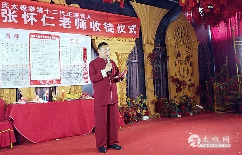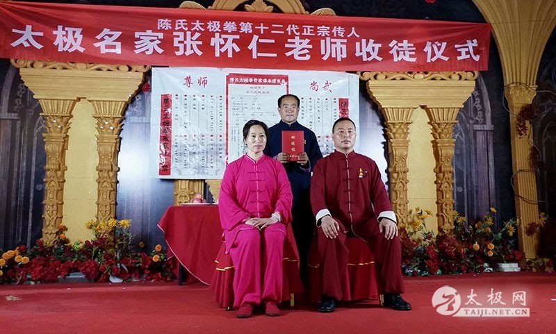 (太极网讯)2020年8月1日,陈式太极拳名师张怀仁老师的收徒仪式在滑县四季同达饭庄隆重举行。来自社会各界的太极拳爱好者及张怀仁老师的弟子、学生50余人参加此次收徒仪式,共同见证了这一庄严的时刻。 到场的嘉宾有: 濮阳市陈照森传媒文化有限公司董事长、濮阳市陈家沟陈照森太极拳功夫馆馆长孙记红 长垣市太极拳推广中心理事长张建红 长垣市太极拳推广中心秘书长秦国学 长垣市太极拳推广中心副理事长傅援之 滑县太极拳协会副会长王好勤 滑县陈式太极拳协会会长卢保军 滑县陈式太极拳协会副会长赵朝胜、宋双群 滑县陈式太极拳协会理事长葛红印 滑县陈式太极拳协会副理事长王勇、赵朝月、谷建国 收徒仪式由滑县太极拳协会副会长王好勤主持,首先张怀仁老师向太极拳创始人陈王廷上香、敬酒,随后新入门弟子王书海宣读和递交拜师贴并向师父、师母行跪拜礼。陈式太极拳第十二代传人赵朝胜老师宣读了陈式门规戒律。张怀仁老师携陈式太极拳第十二代、十三代弟子及所有学生和太极拳爱好者一起向祖师鞠躬行礼。在众人的见证下,收徒仪式圆满礼成。 新入门弟子王书海表示一定要遵守门规、团结同门,好好地跟随师父学拳,勤学苦练,做好弘扬太极拳的接力棒。 张怀仁老师在最后致辞道:首先感谢我的恩师陈照森大师为我授拳解惑,不断的为我提高拳技,才有了今天的成就和收获。也很高兴收王书海为徒,因其刻苦勤奋,待人诚恳,尊师重道。希望能再接再厉,团结同门,互帮互助,谦虚好学,不骄不躁。师徒齐心协力共同弘扬、发展、传承太极拳,把陈照森太极拳法发扬光大,使身边的每一个人受益,从而全民共享太极、共享健康,为创造和谐社会、和谐人生、和谐家庭服务。 张怀仁老师简介: 张怀仁,师承陈式太极拳第十一代嫡宗传人、陈家沟西北拳社(陈花梅)第五代掌门人、人称“大刀王”的陈照森先生,陈式太极拳第十二代传人,中国武术六段、国家一级拳师、陈式太极拳高级教练员、太极拳名师,国家级社会体育指导员,国家级健身气功社会指导员和一级裁判。 现任陈照森太极拳研究会副理事长、副会长、助教,滑县太极拳协会副秘书长,滑县陈式太极拳协会秘书长,濮阳市陈照森太极功夫馆顾问、副总教练,长垣市太极拳推广中心名誉理事长、副总教练。 本站责编:小杨 |