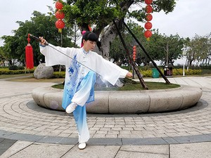 林素玉:42式太极剑竞赛套路 林素玉参与太极网主办的寻找最美太极人——2020“红棉杯”第六届国际太极拳网络视频大赛,表演42式洪传陈式太极拳。