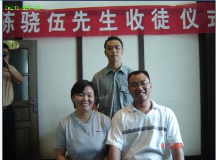 2005年9月4日在焦作经纬大酒店,来自四川重庆的吴存松正式拜在陈骁伍老师门下,槐园弟子喜添新人。 吴存松自幼酷爱武术,但苦于无师所从,2002年考入河南焦作的一所大学后,深深地爱上了这历史悠久的城市,也爱上了名扬四海的太极拳。2003年起他开始在公园跟几个老师学习太极拳。功夫不负有心人,经过近一年的学习,觉的自己的身体素质、基本武术技能有了不少提高,他深知要把太极拳真正学好,非得跟从有真才实学、并愿意将本领真诚相授的老师不可,为了在自己热爱的武术事业上有所建树,他多方寻访,最终认定了以技击功夫闻名的陈骁伍的老师。经过近两年的学习,他越发为陈骁伍老师的人品和拳品所折服,多次提出要正式入门,骁伍老师也为他的朴实、勤奋和真诚打动,二人随结师徒之缘。 拜师这天,前来祝贺的社会各界及武术界朋友欢聚一堂,祝贺吴存松得拜陈式太极拳名家陈骁伍先生为师。